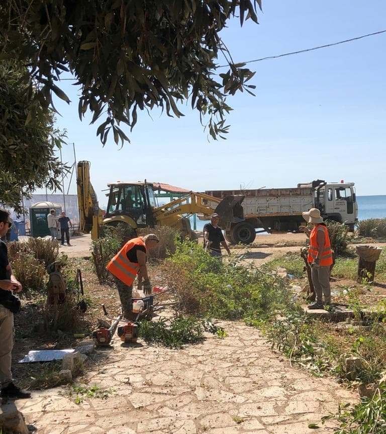Συνεργεία των Διευθύνσεων Καθαριότητας και Ανακύκλωσης και Περιβάλλοντος και Πρασίνου προχωρούν σε συντονισμένες εργασίες καθαρισμού, στο πλαίσιο των αρμοδιοτήτων του Δήμου, καθώς η παραλία είναι χαρακτηρισμένος αρχαιολογικός χώρος.