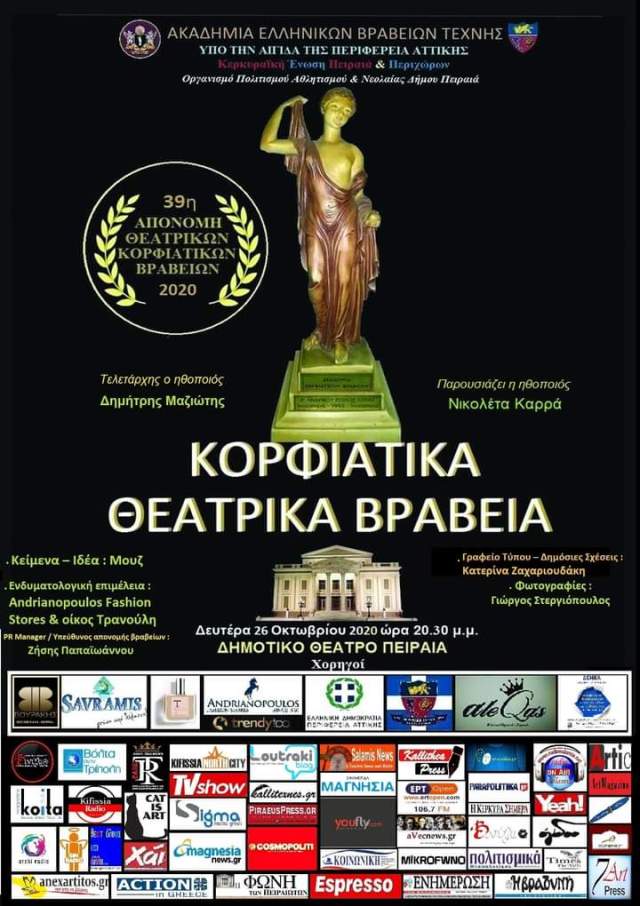 39η απονομή των θεατρικών Κορφιάτικων Βραβείων 2020