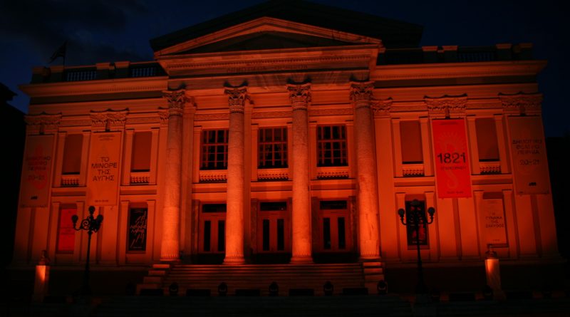 Το Δημοτικό Θέατρο Πειραιά φωταγωγήθηκε χθες, στο πλαίσιο της Παγκόσμιας Ημέρας για την Εξάλειψη της Βίας κατά των Γυναικών, σε πορτοκαλί χρώμα, το χρώμα που καθιέρωσε ο ΟΗΕ για να συμβολίζει τον αγώνα ενάντια στη γυναικεία κακοποίηση.