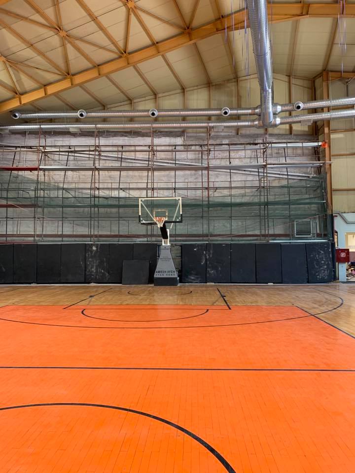 Συγκεκριμένα, υλοποιούνται εργασίες επισκευής και μονώσεις σε τοίχους περιμετρικά του γηπέδου, επισκευάζεται ο φωτισμός και τοποθετείται νέος, ανακαινίζονται τα αποδυτήρια, ενώ ήδη έχει τοποθετηθεί σύστημα ψύξης-θέρμανσης και εξαερισμού σε όλο το γήπεδο.