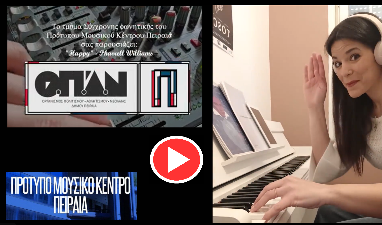 Το Τμήμα Σύγχρονης Φωνητικής του Πρότυπου Μουσικού Κέντρου Πειραιά σας παρουσιάζει το Happy by Pharrell Williams “Happy” (Χαρούμενοι) σε μια δύσκολη εποχή όπου μία νότα αισιοδοξίας είναι απαραίτητη. #menoumespiti
