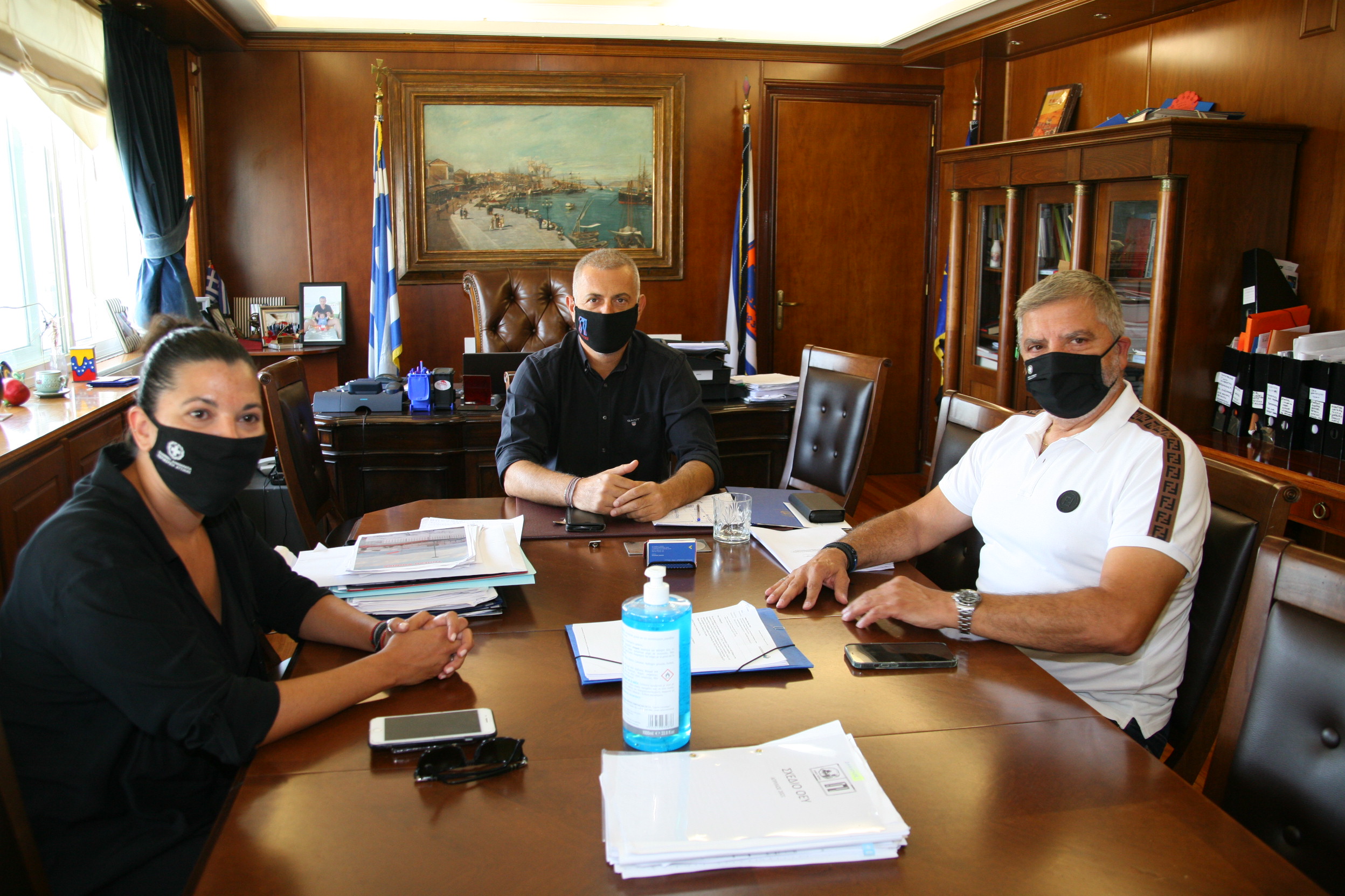 Προηγήθηκε συνάντηση στο δημαρχείο, όπου έγινε ανταλλαγή απόψεων για την μέχρι τώρα συνεργασία Δήμου και Περιφέρειας, η οποία χαρακτηρίστηκε παραγωγική και επωφελής για την πόλη του Πειραιά.