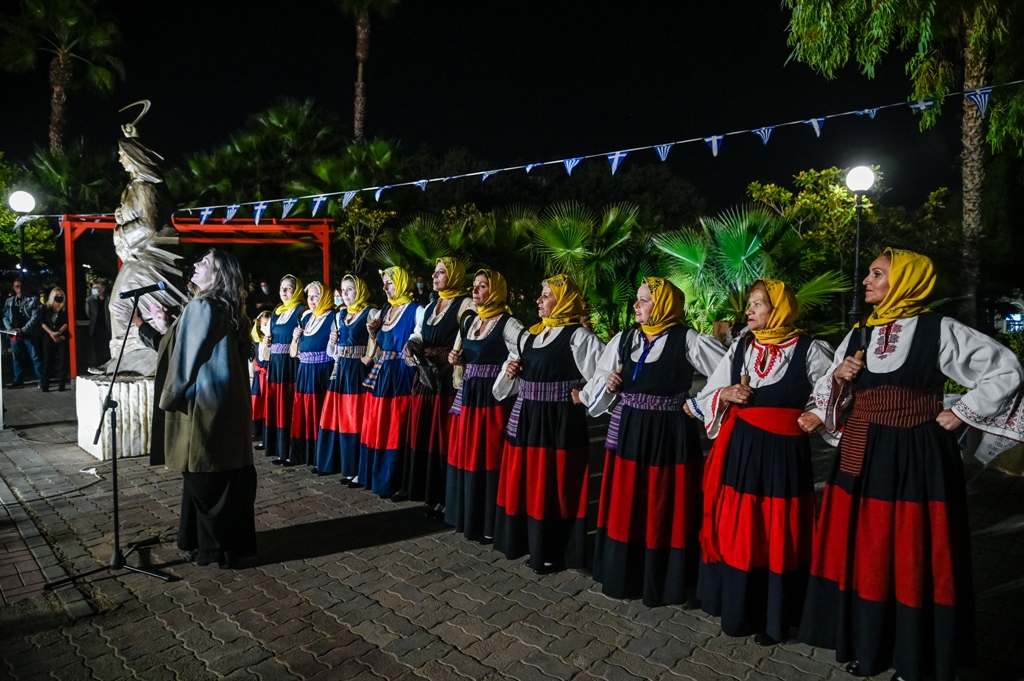 Στην τελετή των αποκαλυπτηρίων ερμήνευσε με μοναδικό τρόπο ένα δημώδες άσμα η κα Βασιλική Καρακώστα. Ακολούθησε χορευτικό από το Χορευτικό Τμήμα της Ένωσης Απανταχού Μανιατών «Η ΜΑΝΗ», το οποίο χόρεψε και τραγούδησε τον «Μανιάτικο».