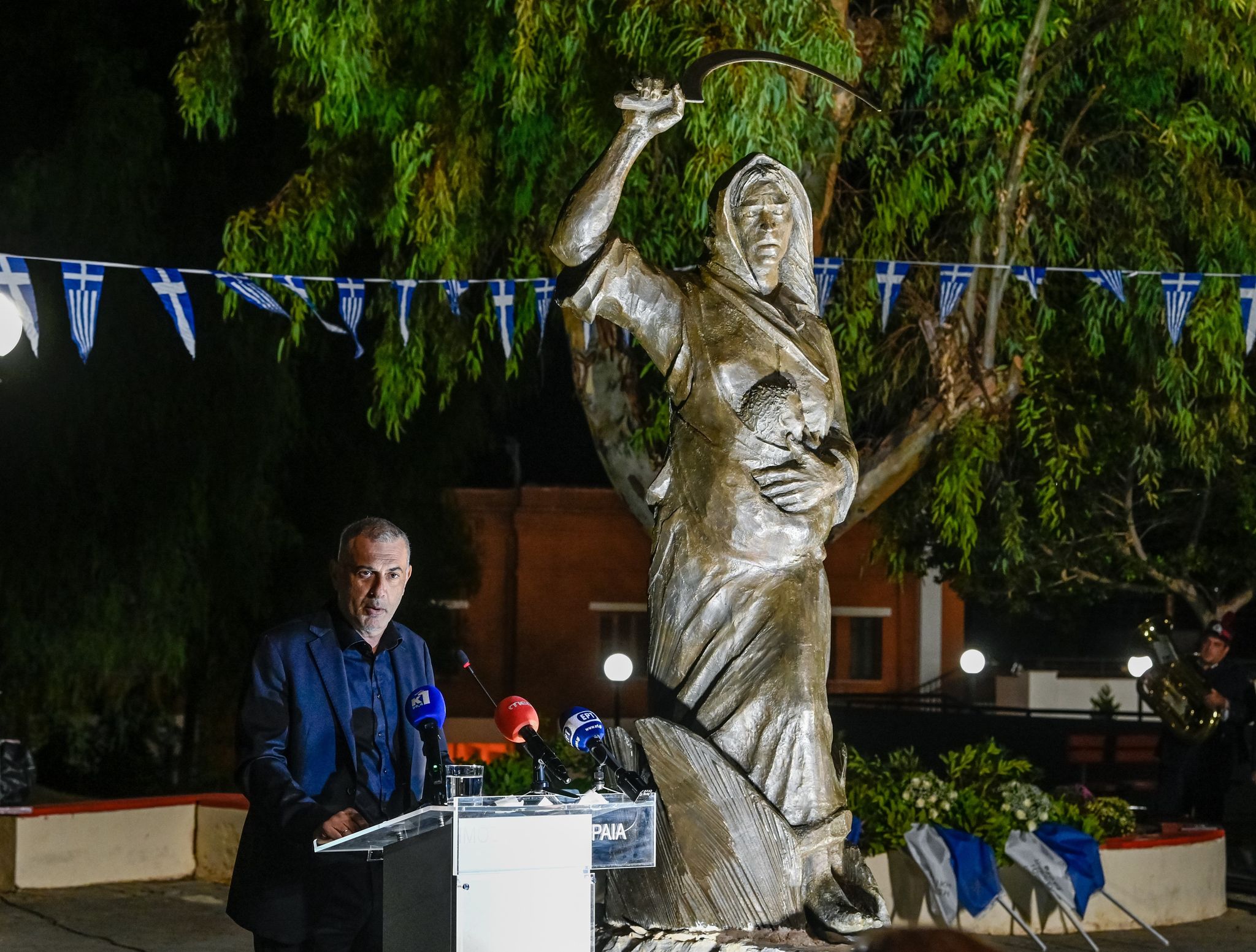 Συγκίνηση και υπερηφάνεια στην τελετή αποκαλυπτήριων του αγάλματος της «Ηρωίδας Μανιάτισσας» στο πάρκο Δηλαβέρη Δωρεά του Βαγγέλη Μαρινάκη.