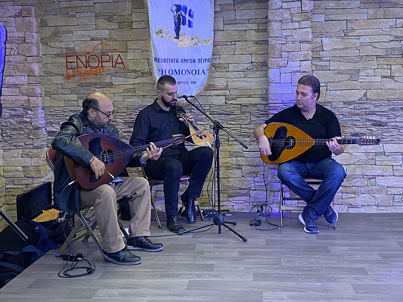 Ένα ιστορικό αφιέρωμα για την συμβολή της Κρήτης στους απελευθερωτικούς αγώνες της πατρίδας μας εναντίον των Τούρκων, πλαισιωμένο με κρητικές μελωδίες και χορούς, παρουσίασε η Αδελφότητα Κρητών Πειραιά «Η Ομόνοια», στο Πνευματικό Κέντρο του Ιερού Ναού Ευαγγελιστρίας Πειραιώς, το Σάββατο 20 Νοεμβρίου, στο πλαίσιο του προγράμματος «ΕΝΟΡΙΑ εν δράσει…».