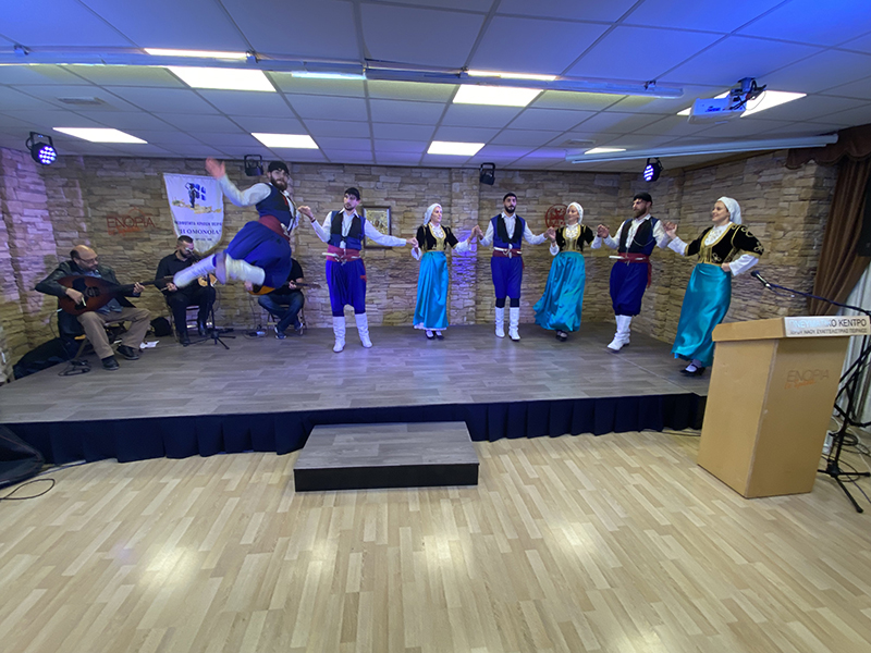 Τη εκδήλωση παρουσίασε η Αντιπρόεδρος της Αδελφότητας Αντωνία–Μαρία Ντουντουνάκη, που είχε και την επιμέλεια των κειμένων με πλούσια ιστορικά στοιχεία, ενώ πλαισίωσαν μουσικοχορευτικά, ο Θοδωρής Ποθουλάκης και τα χορευτικά της «Ομόνοιας».