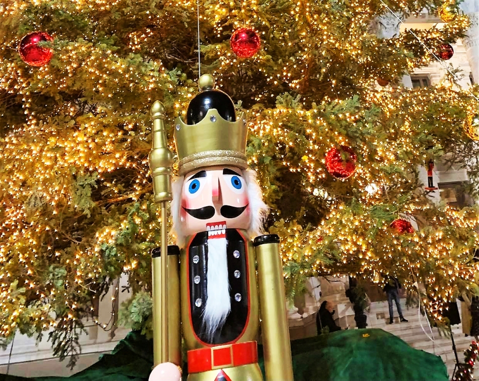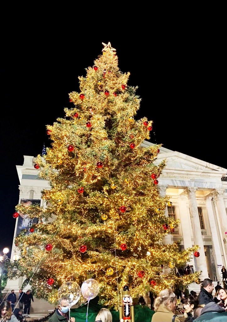 Όλα τα βλέμματα ήταν στραμμένα καθόλη τη διάρκεια της βραδιάς στο φυσικό Χριστουγεννιάτικο δένδρο, το οποίο έχει εφέτος ύψος 19 μέτρα και είναι το πιο λαμπερό σε όλη τη χώρα, καθώς έχει στολιστεί με περισσότερα από 100.000 λαμπάκια! Ο στολισμός του είναι εμπνευσμένος από μια αγαπημένη Χριστουγεννιάτικη ιστορία αυτή του «Καρυοθραύστη», ένα γλυκό μαγικό παραµύθι για µία κούκλα παιχνίδι, που ζωντανεύει στα όνειρα ενός μικρού παιδιού και μας μεταφέρει σε έναν παραμυθένιο κόσμο, όπου όλα είναι μαγικά! Η πόλη με τον εντυπωσιακό στολισμό της είναι πιο εξωστρεφής,  λαμπερή, φωτισμένη σε κάθε γειτονιά και στέλνει μήνυμα χαράς, ελπίδας και αισιοδοξίας στη δύσκολη αυτή περίοδο που εξακολουθούμε να βιώνουμε εξαιτίας της πανδημίας.