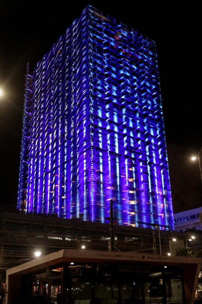 Το δεύτερο υψηλότερο κτήριο της Ελλάδος, σύμβολο αναγέννησης και ορόσημο για την ανάπτυξη της πόλης, το οποίο δεσπόζει σε ένα από τα κεντρικότερα σημεία του Πειραιά έλαμψε, πλημμυρίζοντας με φως το μεγάλο λιμάνι και τον Πειραϊκό ουρανό, σε μια φωταγώγηση μοναδικής αισθητικής γεμάτη παλμό, συναίσθημα και γιορτινά χρώματα!