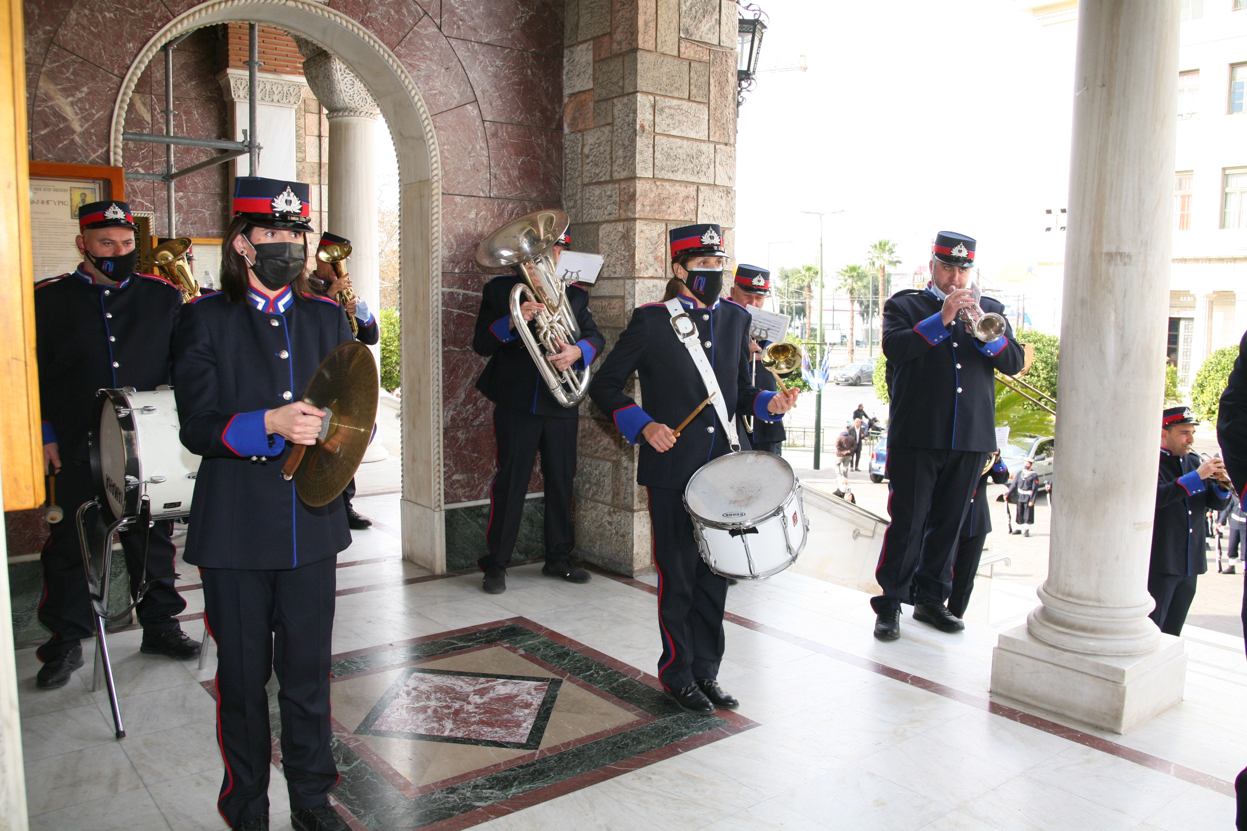 Την τελετή πλαισίωναν μουσικά, στον αύλειο χώρο του Ιερού Ναού, η Φιλαρμονική Ορχήστρα του Δήμου Πειραιά και η Μπάντα του Λιμενικού Σώματος. Επίσης, παιδιά της Αδελφότητας Κρητών Πειραιά «Η ΟΜΟΝΟΙΑ» έψαλλαν τα κρητικά κάλαντα.