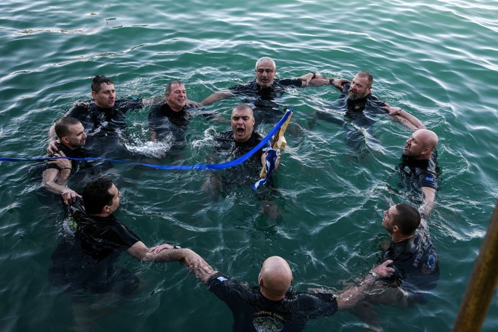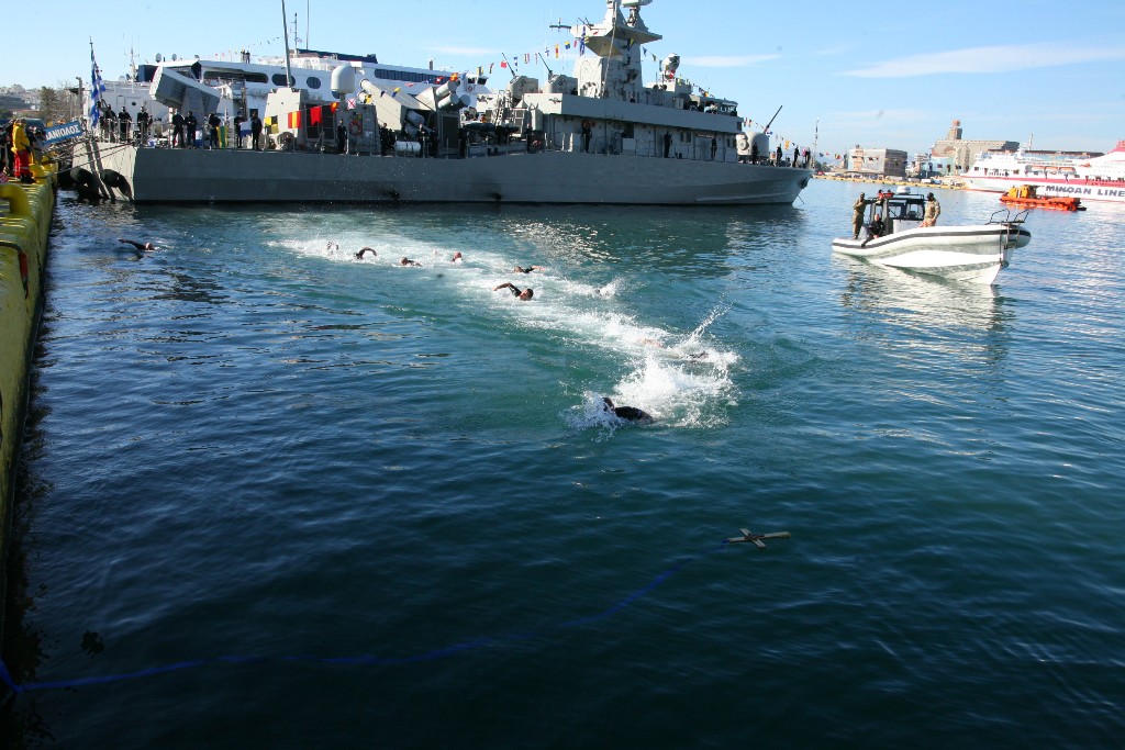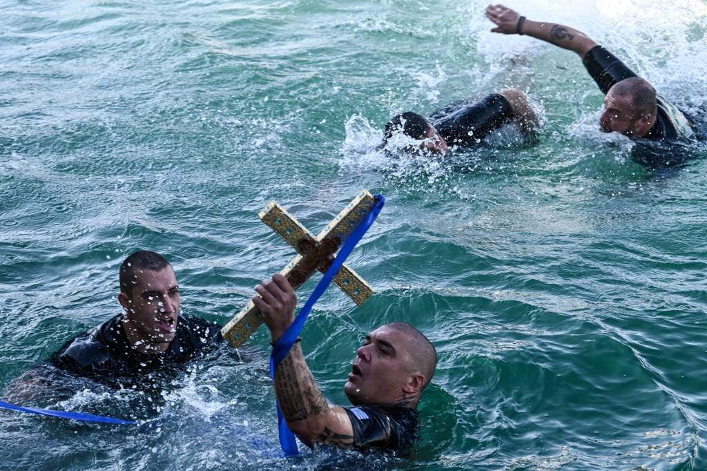 Τιμές στην τελετή ρίψης του Τιμίου Σταυρού απέδωσαν δύο πλοία του Πολεμικού Ναυτικού, ενώ παιάνιζε η μπάντα του Λιμενικού Σώματος. Μέλη του Συνδέσμου Ελλήνων Βατραχανθρώπων, βούτηξαν στη θάλασσα, όπως κάθε χρόνο  και ανέσυραν τον Σταυρό.