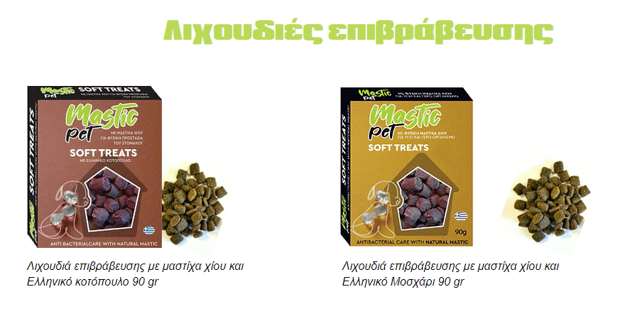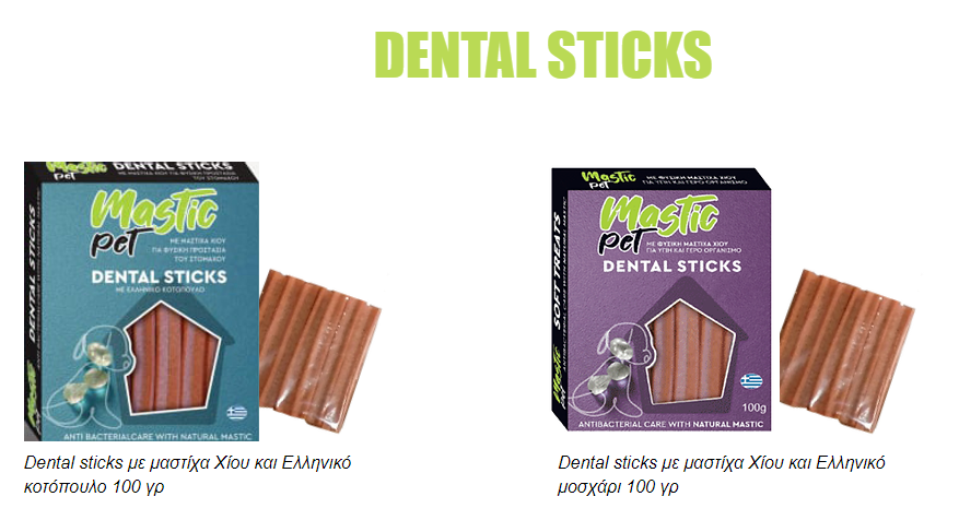 Οι λιχουδιές επιβράβευσης και τα Dental sticks αποτελούν τον µοναδικό, δυνατό συνδυασµό της μαστίχας Χίου με την άριστη πρώτη ύλη αυστηρά Ελληνικής προέλευσης.