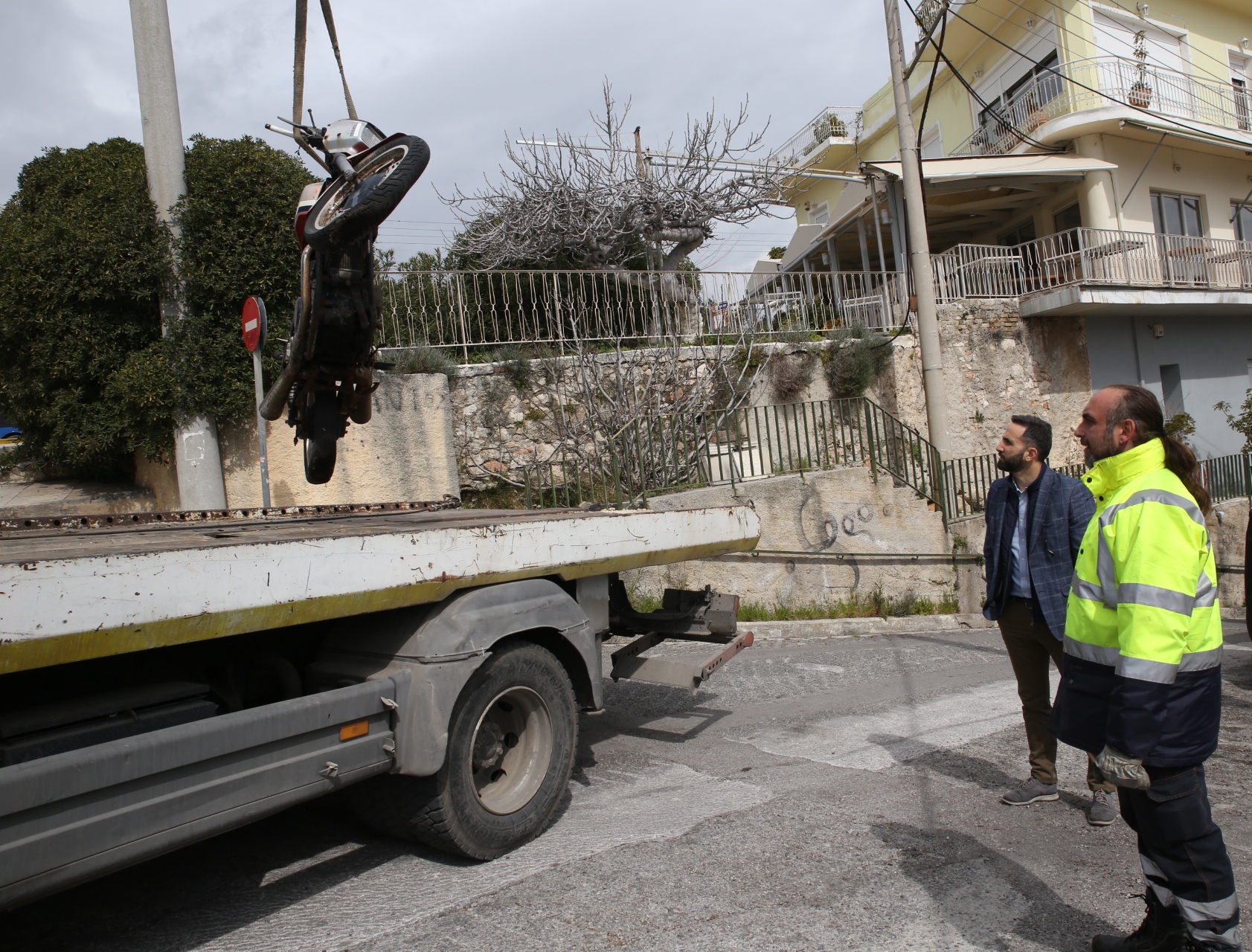 Ο Δήμος Πειραιά απομάκρυνε εγκαταλελειμμένα δίκυκλα από το κέντρο και τις γειτονιές της πόλης
