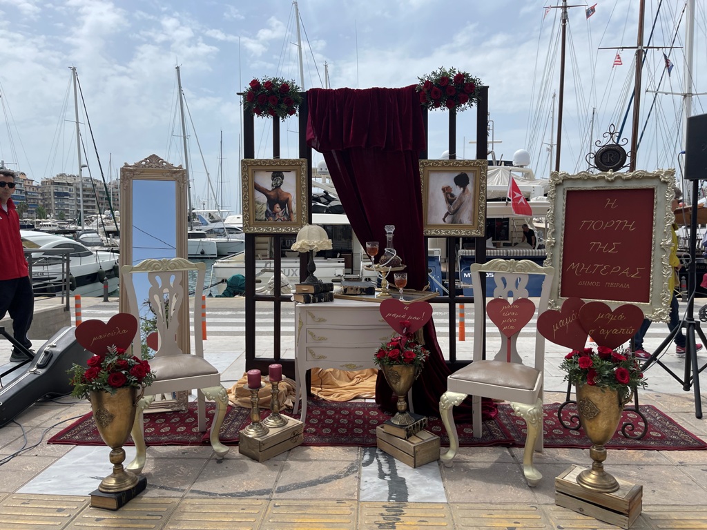 Στη συνέχεια ο Δήμαρχος Πειραιά κ. Γιάννης Μώραλης βρέθηκε μαζί με τη σύζυγό του κα Βάλια Κυριαζή και τα παιδιά τους στο Πασαλιμάνι, όπου είχε στηθεί μια πραγματική γιορτή με ζωντανή μουσική και όπου μπροστά από ένα καλαίσθητο σκηνικό, νέοι και νέες προσέφεραν τριαντάφυλλα στις διερχόμενες μητέρες.