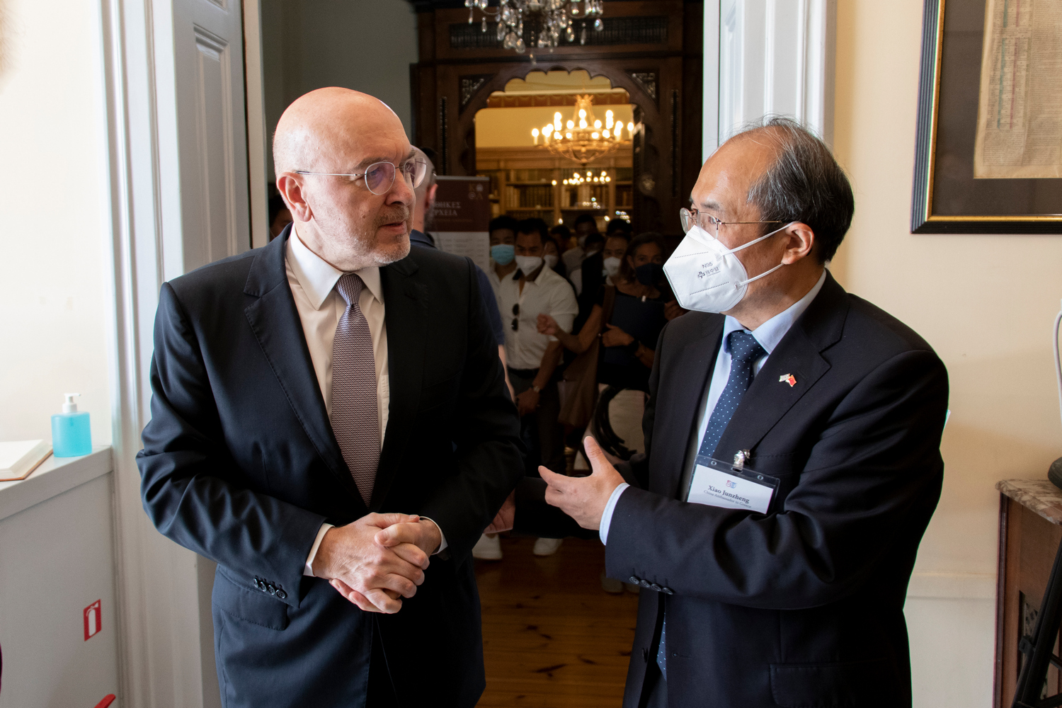Εκ μέρους της Λαϊκής Δημοκρατίας της Κίνας, κ. Xiao Junzheng, Πρέσβης της Κίνας στην Ελλάδα, στον χαιρετισμό του μίλησε για τη μακρόχρονη συνεργασία και τη νέα δυναμική που υπάρχει στις σχέσεις των δύο χωρών, τη σημασία της Ελλάδας ως εταίρου στην κεντροανατολική Ευρώπη και τη δυνατότητα ανάπτυξης αμοιβαία επωφελών συνεργασιών. Τέλος, ο κ. Zhao Qi, Γενικός Γραμματέας της Κινεζικής Ακαδημίας Κοινωνικών Επιστημών, μεταξύ άλλων τόνισε τη σημασία των ελληνοκινεζικών σχέσεων για τη συνεργασία της Κίνας με την Ευρωπαϊκή Ένωση.