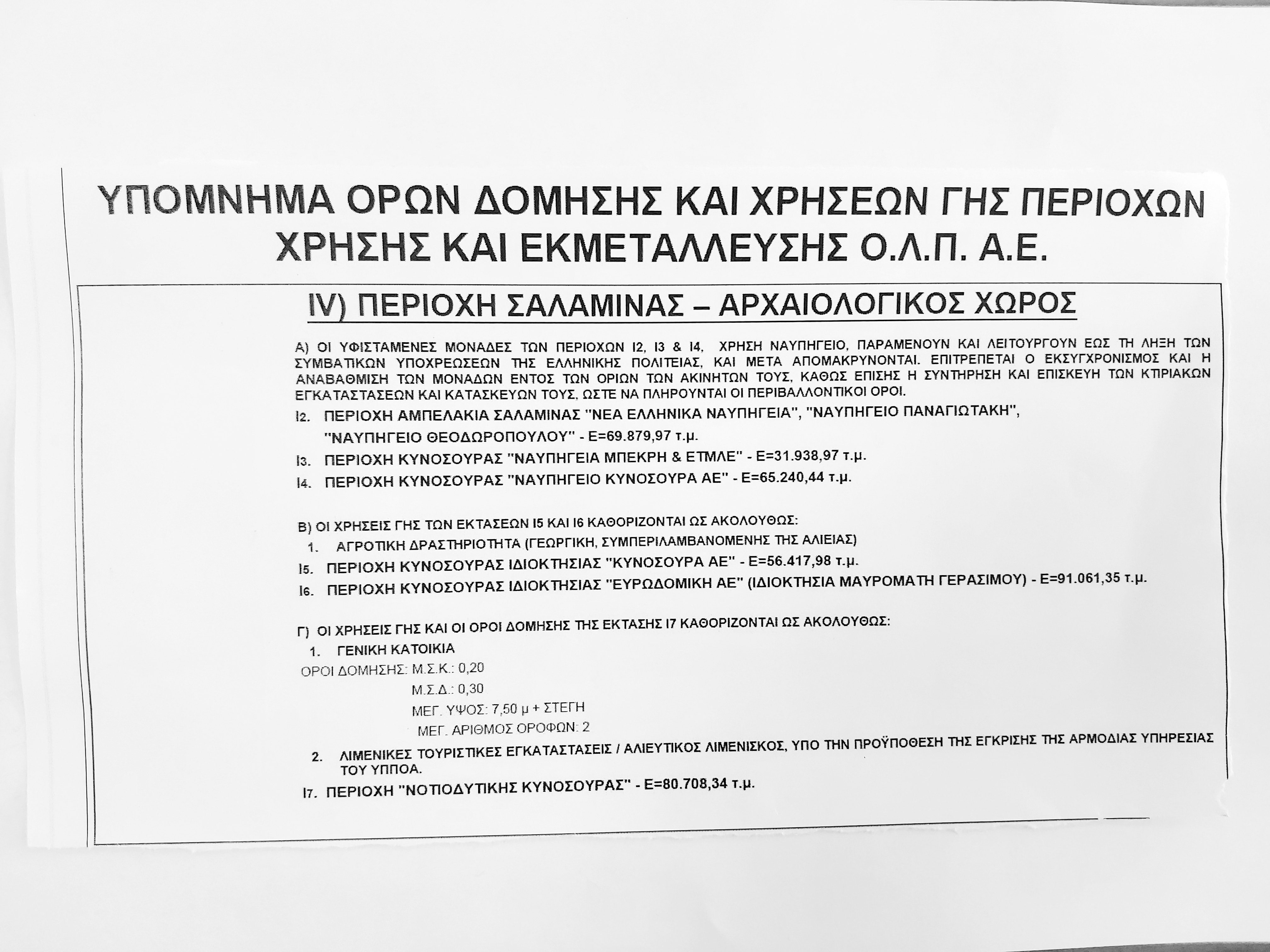 Όσοι πιστεύουμε ότι το μέλλον της Σαλαμίνας και το μέλλον των παιδιών μας περνά μέσα από την βιώσιμη ανάπτυξη του νησιού δεν μπορούμε να συνηγορήσουμε σε τέτοιες επενδύσεις».