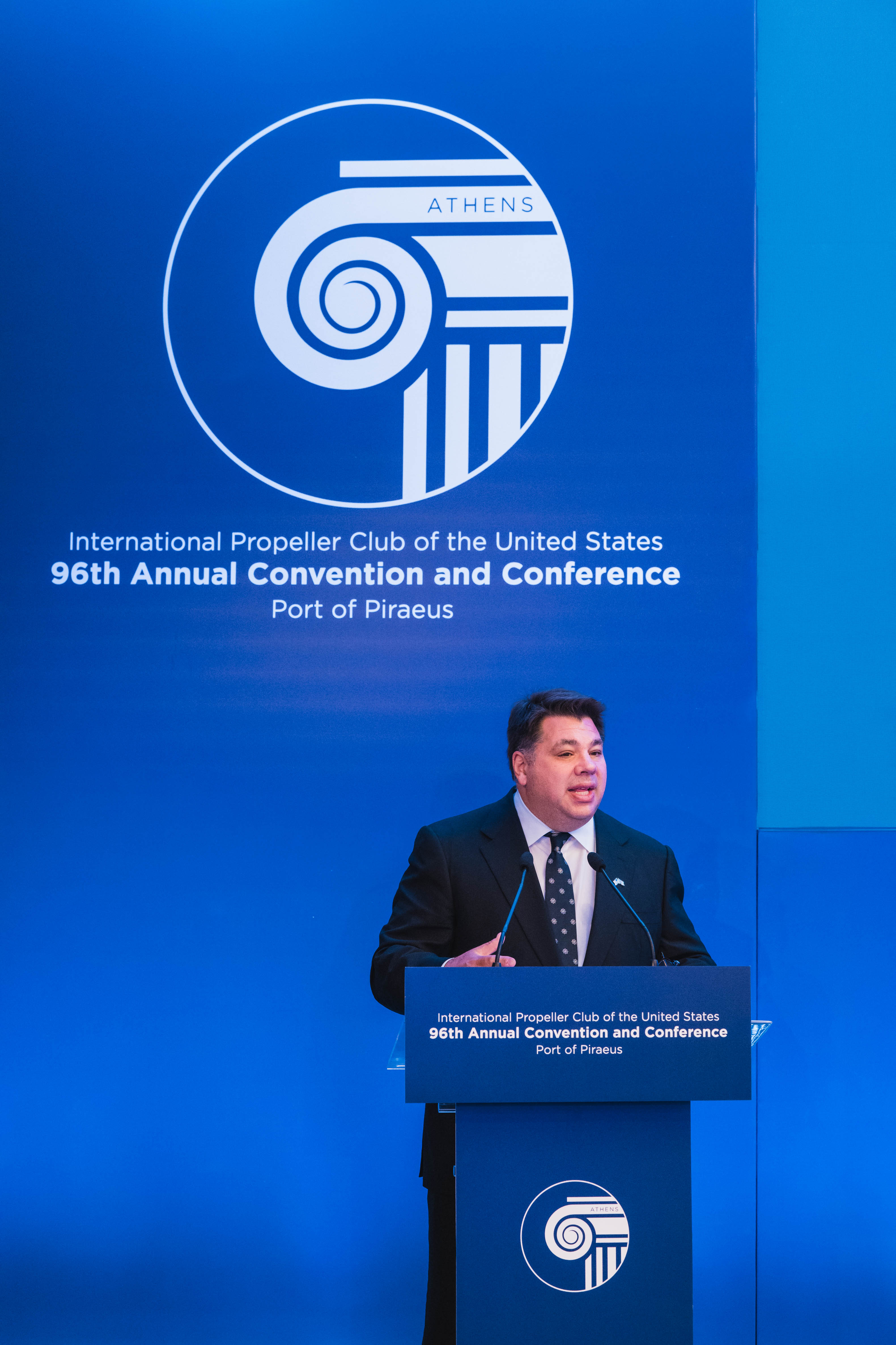 Οι εργασίες του 96ου Ετήσιου Συνεδρίου του International Propeller Club of the United States ξεκίνησαν με ομιλία του Κωστή Φραγκούλη, Προέδρου του Propeller Club του Πειραιά και της Οργανωτικής Επιτροπής του Συνεδρίου, ο οποίος καλωσόρισε τους συμμετέχοντες και μίλησε για την ξεχωριστή σημασία της διοργάνωσης τόσο για την Ελλάδα όσο και για την παγκόσμια ναυτιλιακή κοινότητα.