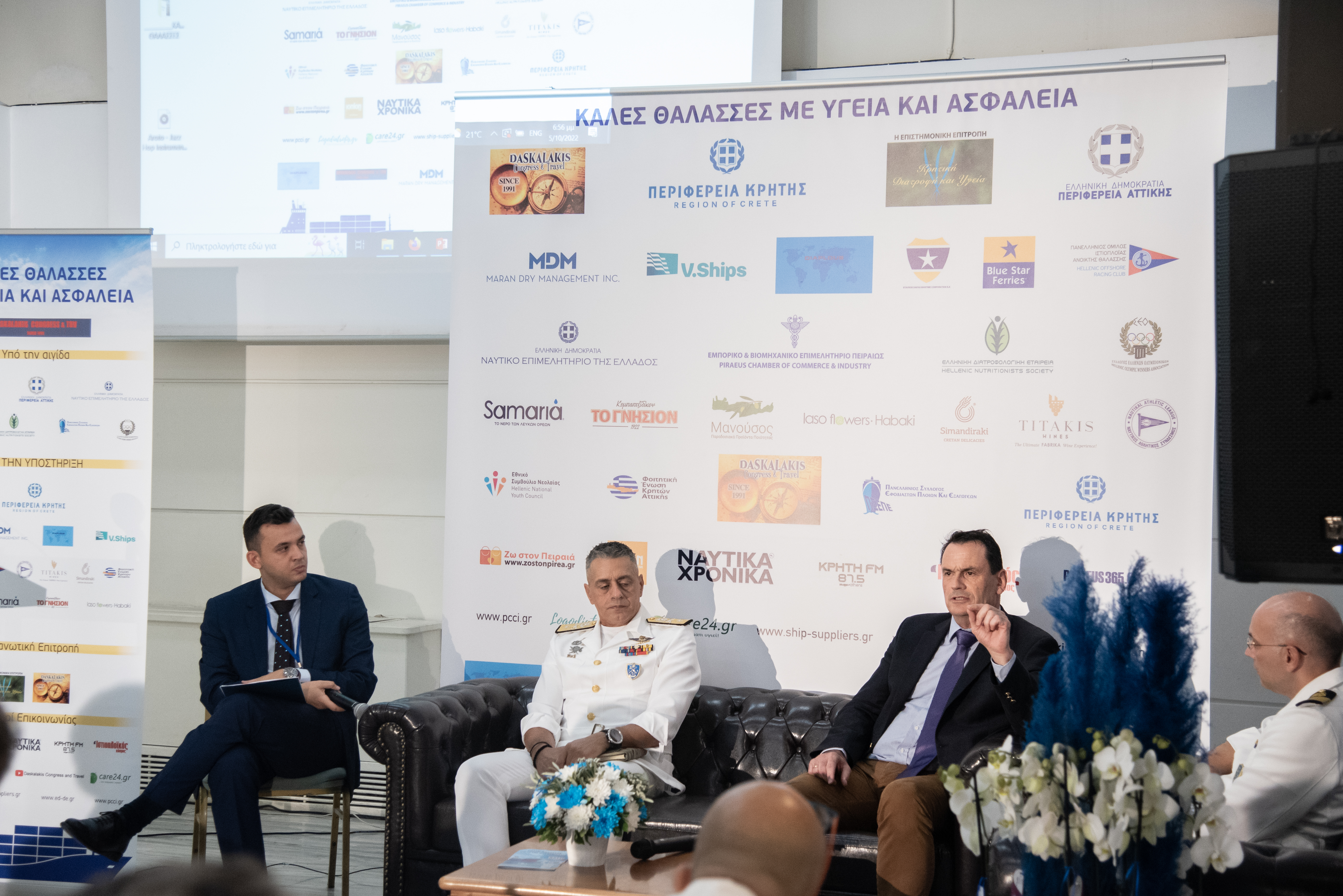 Ο  Διοκητής  μονάδας υποβρυχίων αποστολών του λιμενικού σώματος κ.Παπαδάκης,ο Διοκητής ΑΕΝ Ασπροπύργου κ.Μανδαλάκης και ο Ceo  Diaplous Maritime  κ.Λαζαρίδης μιλησαν την ασφάλεια στην πλοήγηση και την προστασία πληρωμάτων  αλλά  και το βαθμό σχετικής κατάρτισης των σπουδαστών μας.Συντονιστής ο κ.Θεοδωρόπουλος των Ναυτικών Χρονικών.