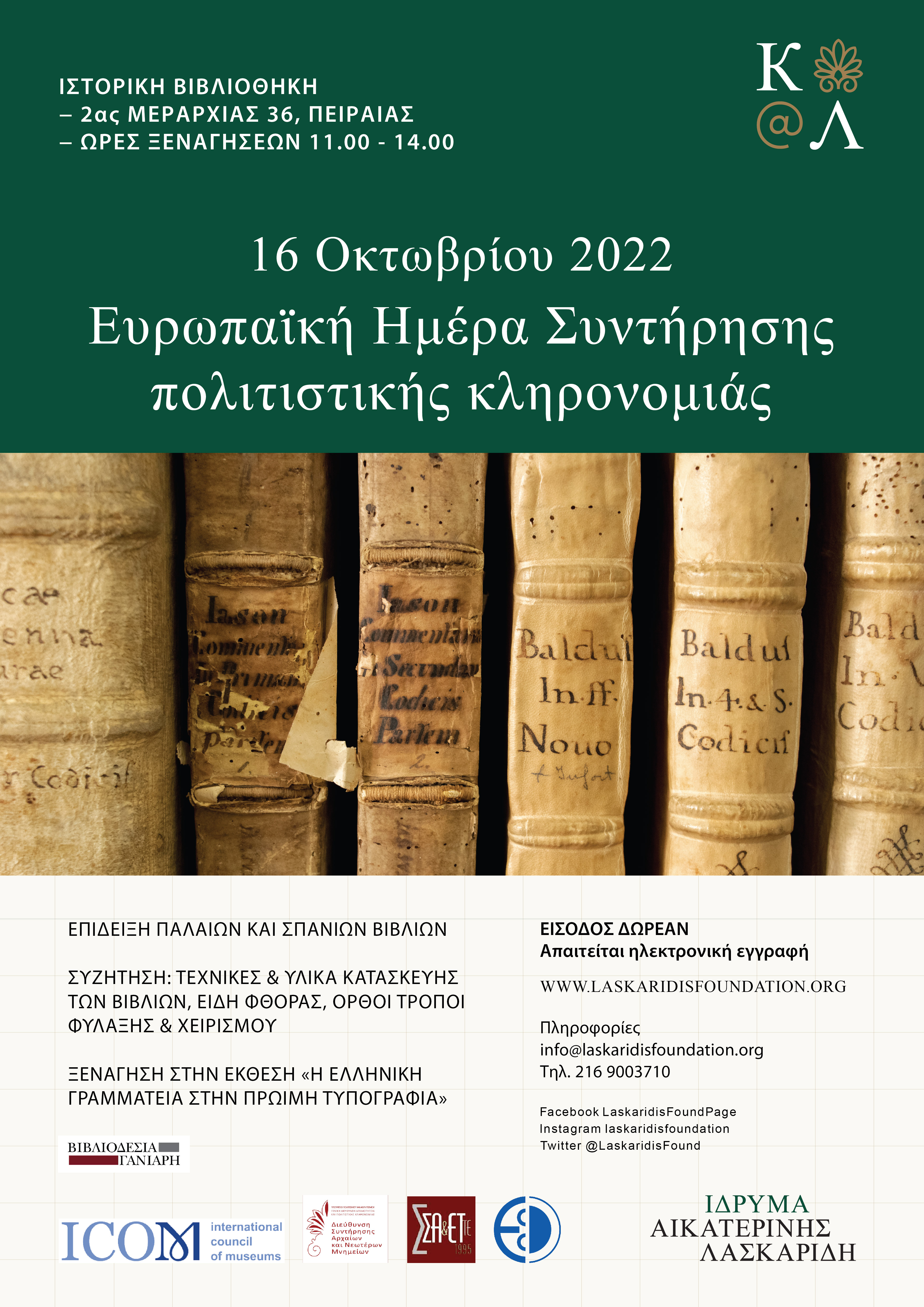 Το Ίδρυμα Αικατερίνης Λασκαρίδη, για 4η συνεχόμενη χρονιά, έχει τη χαρά να συμμετέχει στον εορτασμό της Ευρωπαϊκής Ημέρας Συντήρησης της Πολιτιστικής Κληρονομιάς.