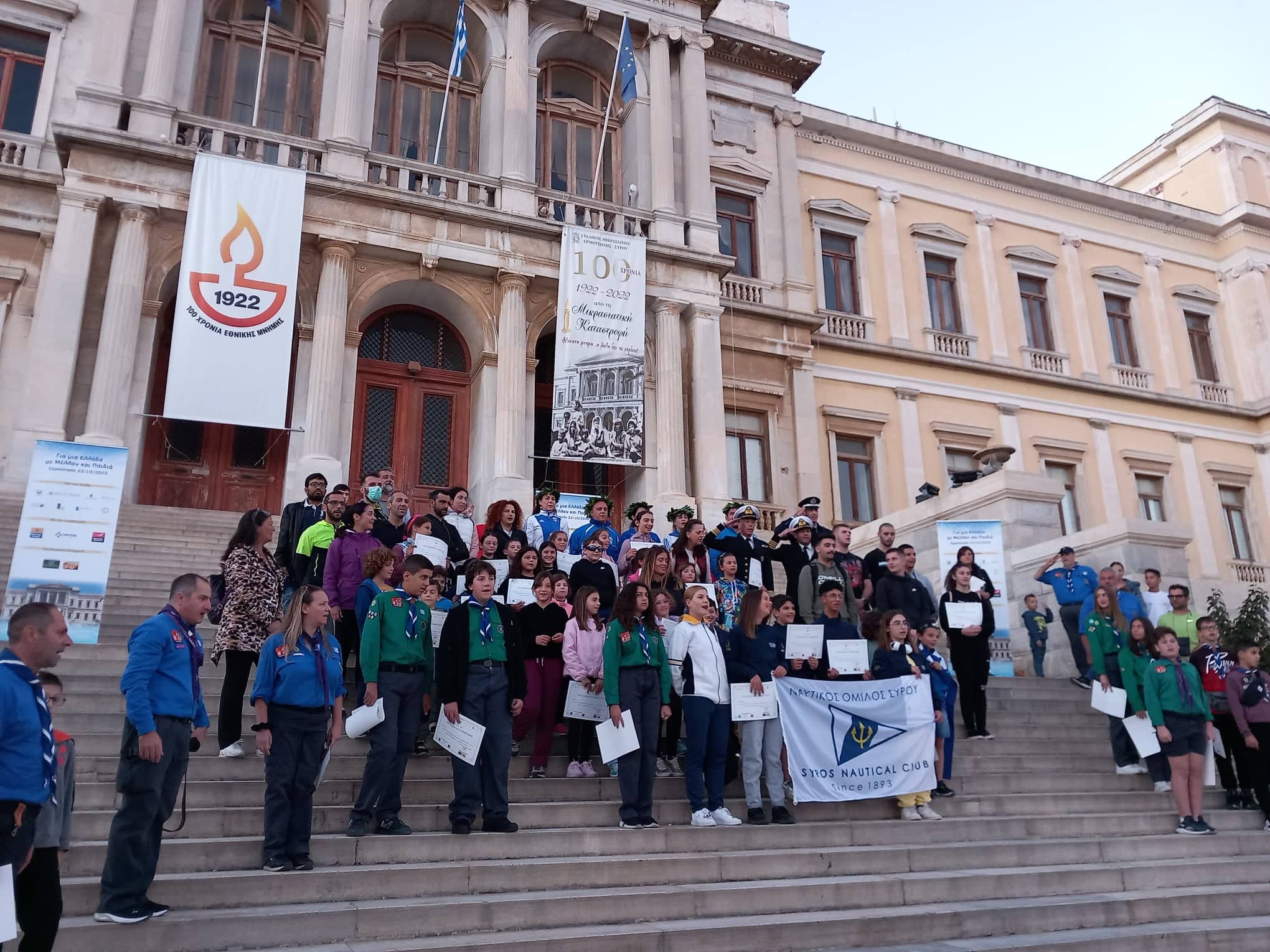 Οι δρομείς υγείας Συρου το σώμα προσκόπων Κυκλάδων εκπροσωπήθηκαν απο πολυπληθείς ομάδες τους, ενώ επισης μετείχαν ο Ναυτικός όμιλος Σύρου, ο Σύλλογος Κρητών του νησιού, η Ακαδημία Εμπορικού ναυτικού και πλήθος κόσμου.