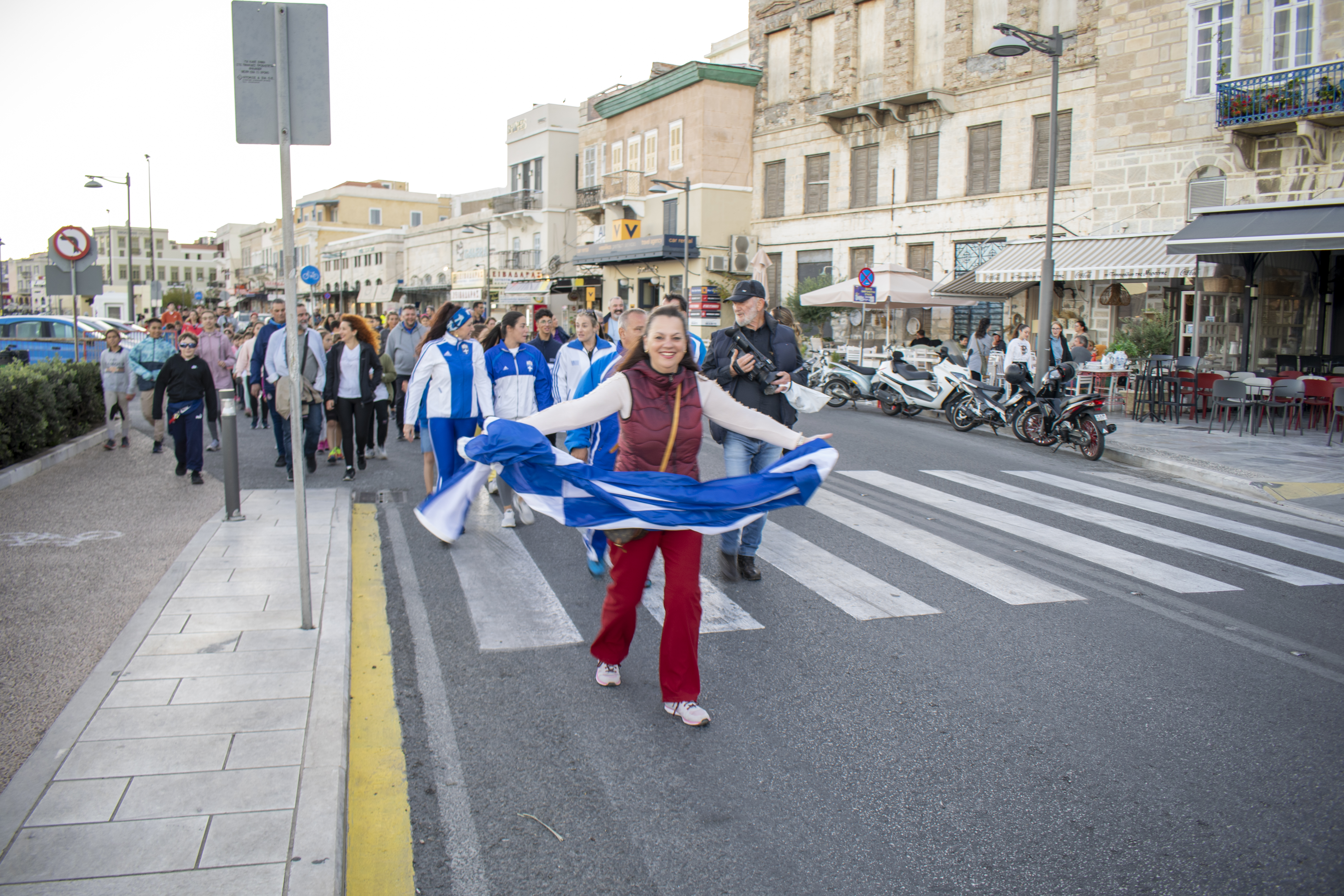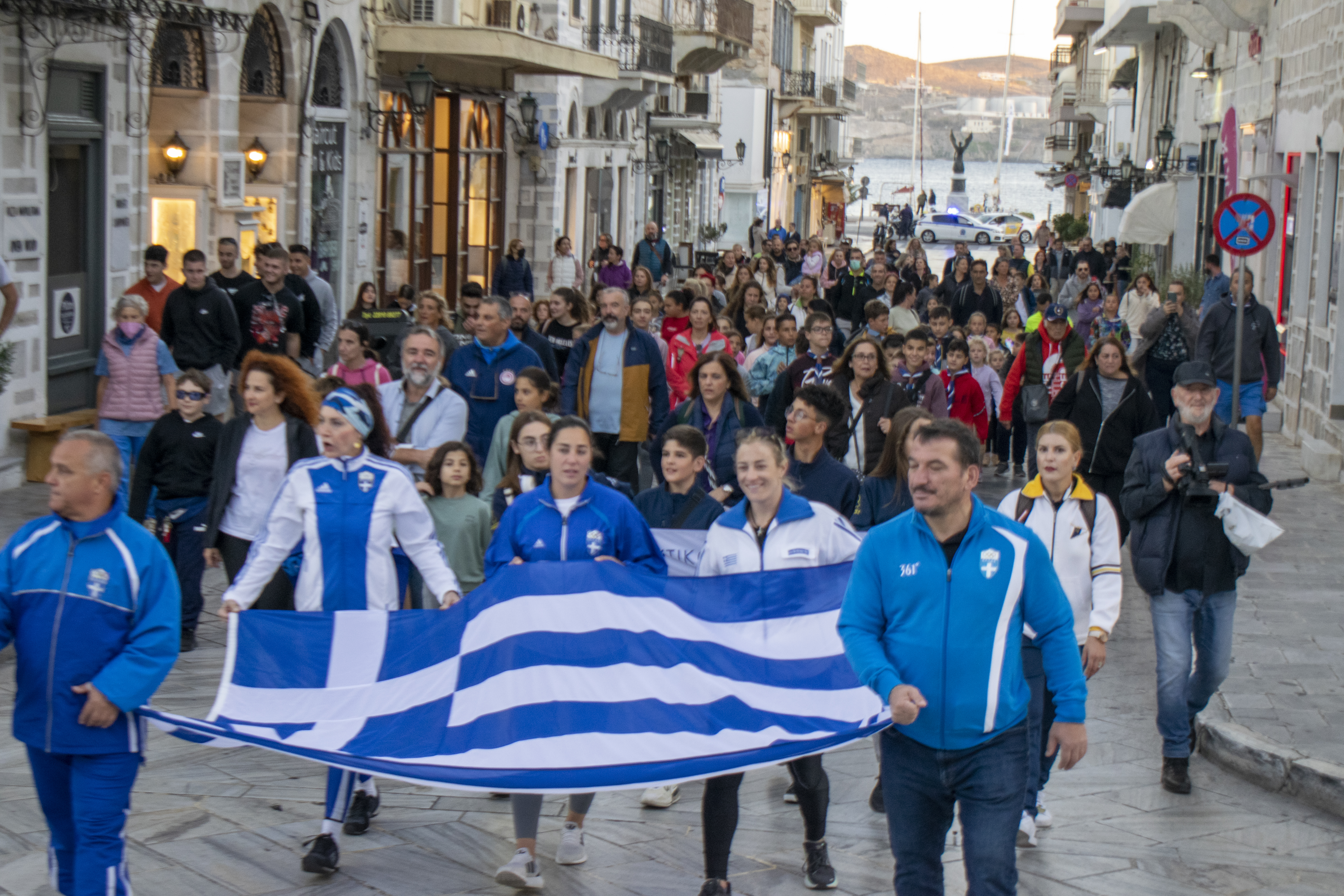 Oi κορυφαίοι Ολυμπιονίκες Πυρος Δήμας ,Γιωργος Τζελίλης. Ελενη Γεωργίου και οι πρωταθλήτριες Αφροδίτη Σκαφίδα και Α.Γιαννικάκη συνοδευόμενοι από εκατοντάδες μικρούς και μεγάλους Συριανούς εκαναν δυναμικό βάδισμα παραλιακά της πόλης ώστε να περάσουν το μνμ της υγείας και του δημογραφικού μας θέματος.