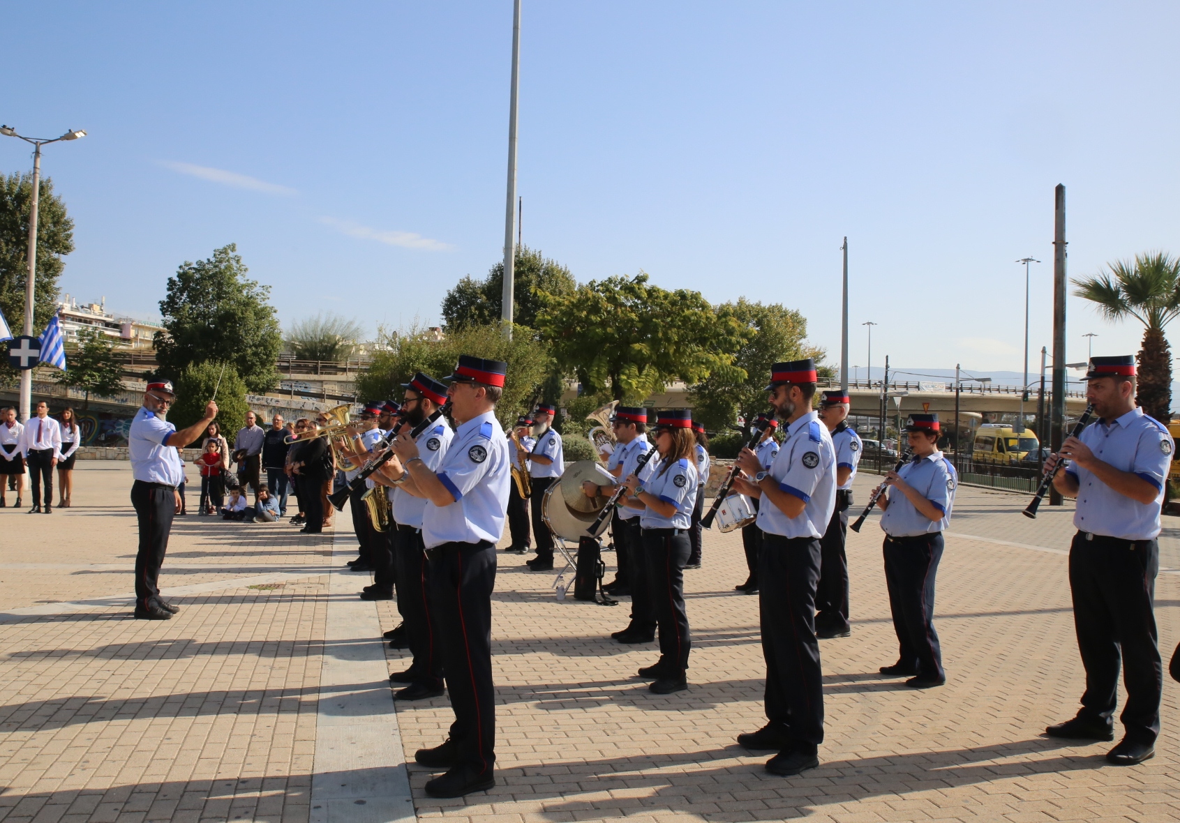 Στην τελετή συμμετείχαν αντιπροσωπείες μαθητών και εκπαιδευτικών  Δημοτικών Σχολείων, Γυμνασίων και Λυκείων της πόλης, ενώ παιάνιζε η Φιλαρμονική του Δήμου Πειραιά.