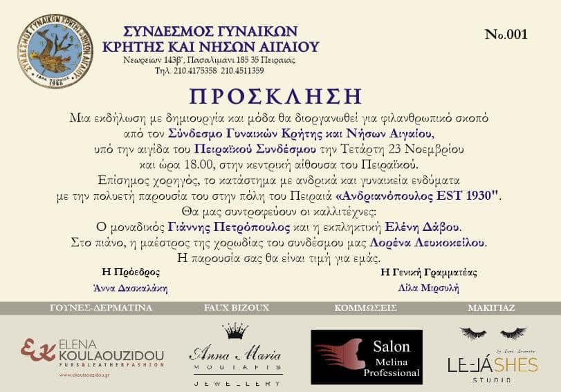 Εκδηλώσεις Εφημερίδα Πολιτισμός Πρόσκληση σε φιλανθρωπική εκδήλωση με “Δημιουργία & Μόδα” από τον Σύνδεσμο Γυνακών Κρήτης & Νήσων Αιγαίου 19 Νοεμβρίου, 2022 DIMITRIS 0 Σχόλια ΕΚΔΗΛΩΣΕΙΣ, ΠΟΛΙΤΙΣΜΟΣ, ΣΥΝΔΕΣΜΟΣ ΓΥΝΑΙΚΩΝ ΚΡΗΤΗΣ Author: DIMITRIS