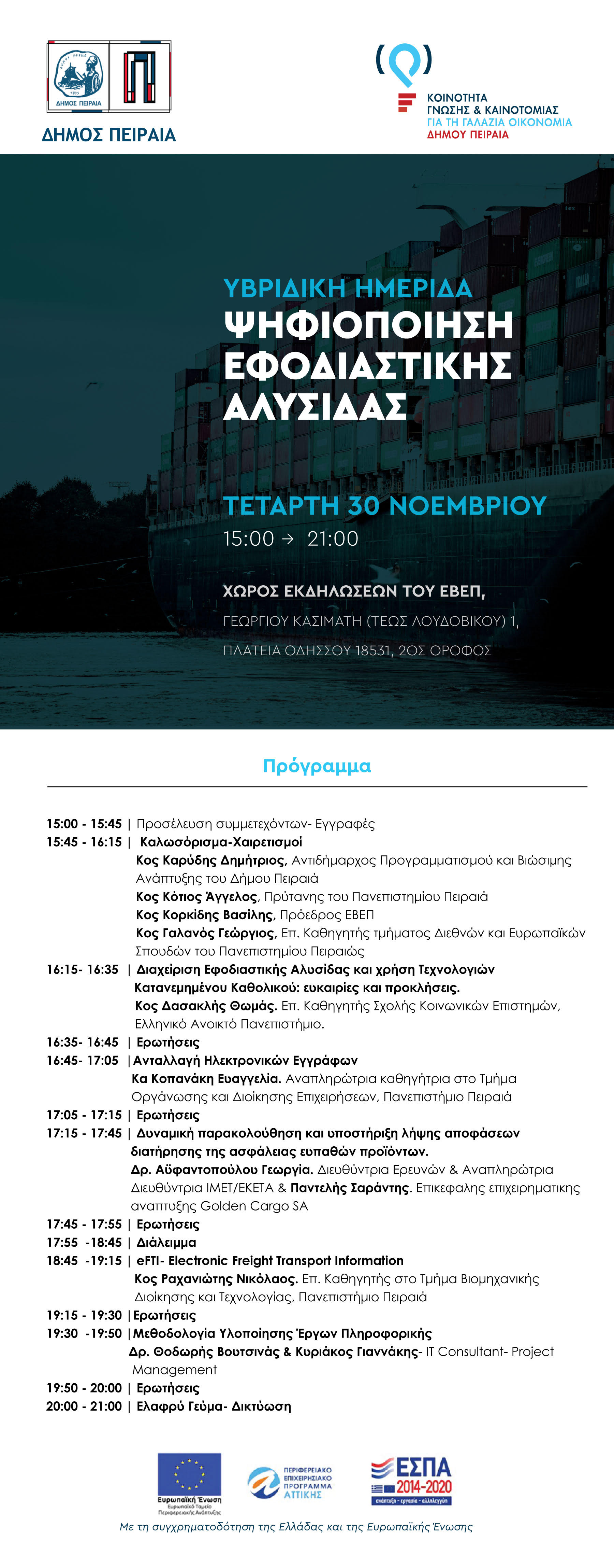 Σας προσκαλούμε στην 1η Υβριδική Ημερίδα του έργου του Δήμου Πειραιά και του Πανεπιστημίου Πειραιά, “Κοινότητα Γνώσης και Καινοτομίας”, με θέμα: