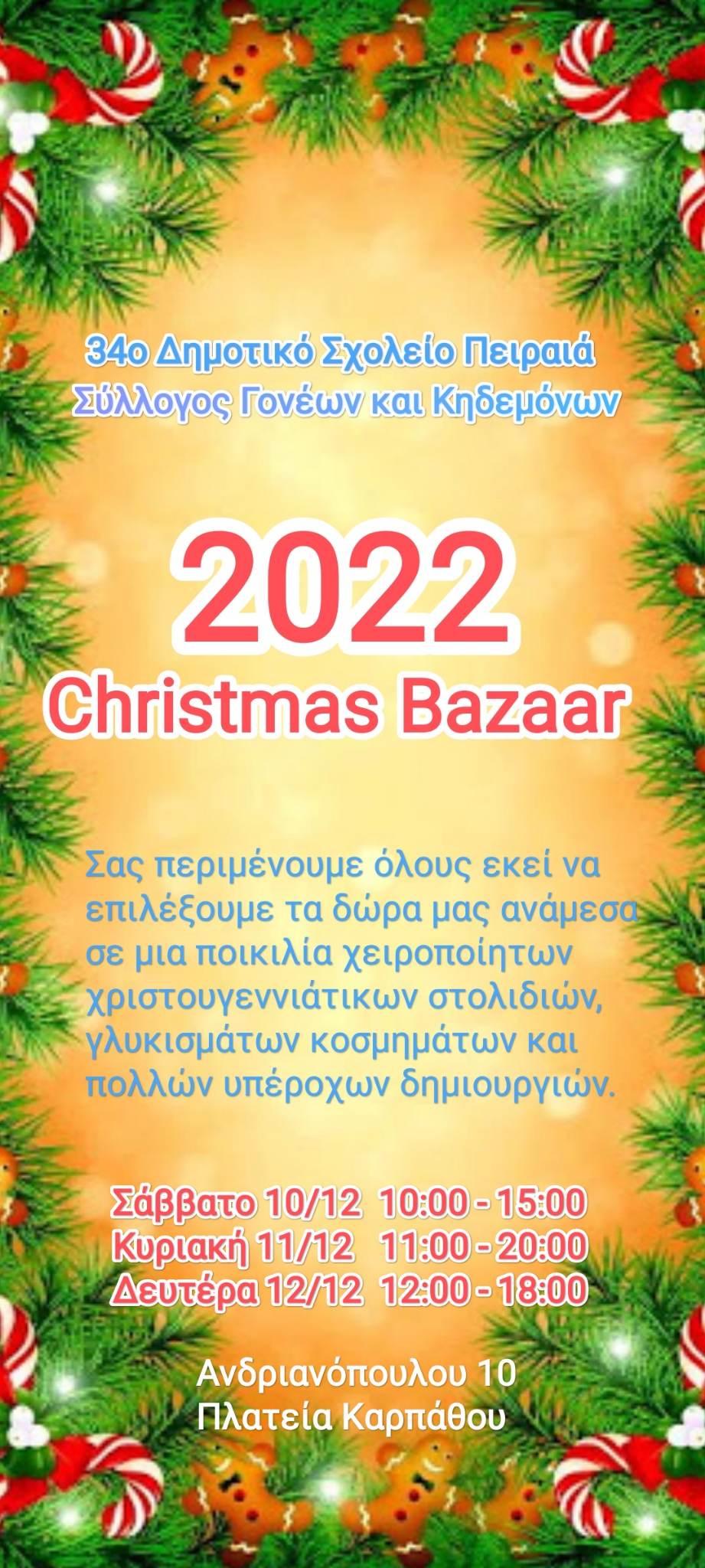 Εκδηλώσεις Εφημερίδα Πολιτισμός Christmas Bazzar από το 34ο Δημοτικό Σχολείο Πειραιά 3 Δεκεμβρίου, 20223 Δεκεμβρίου, 2022 DIMITRIS 0 Σχόλια BAZAAR, ΧΡΙΣΤΟΥΓΕΝΝΑ Author: DIMITRIS