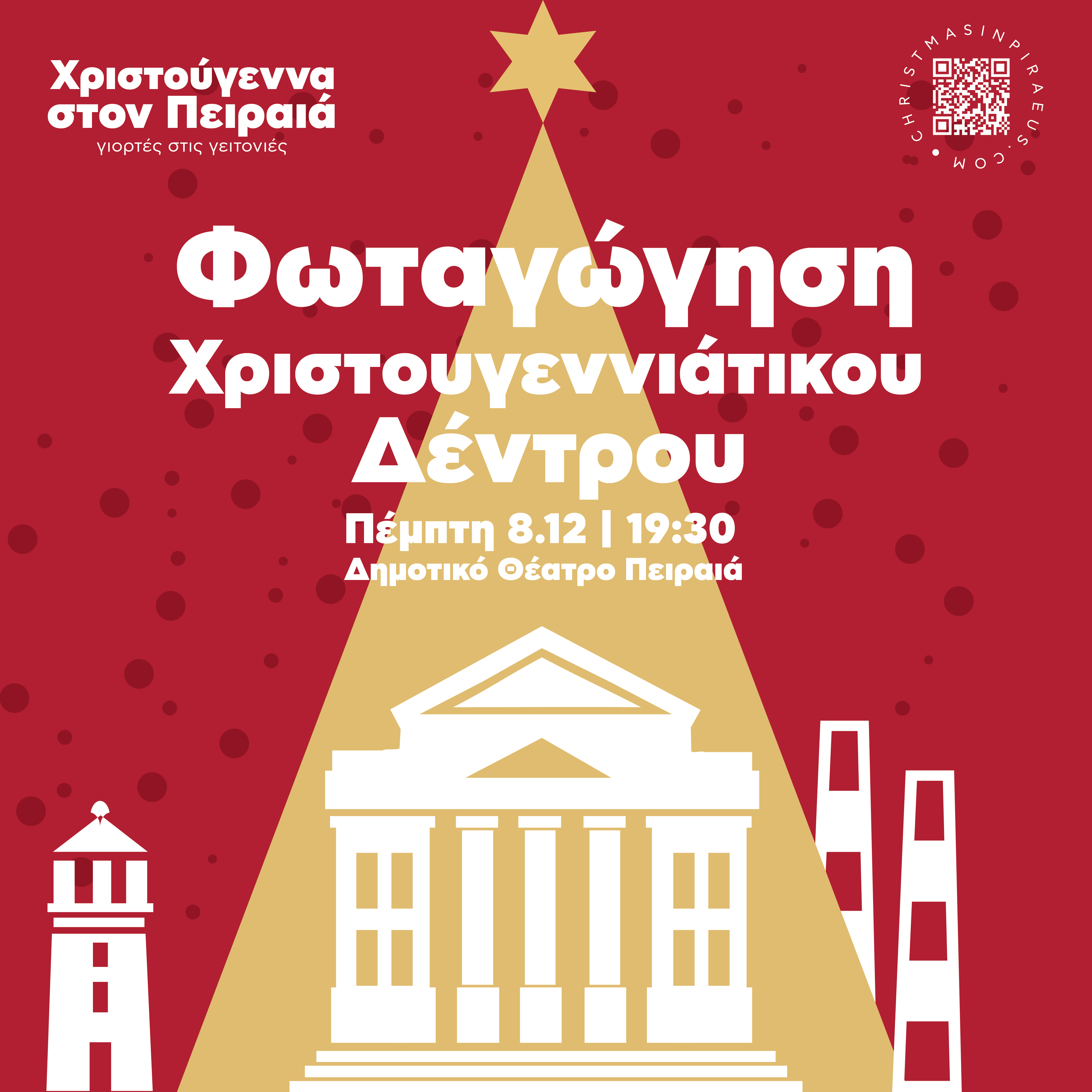 Oι εκδηλώσεις των Χριστουγέννων και της Πρωτοχρονιάς ξεκινούν επισήμως την Πέμπτη 8 Δεκεμβρίου. Ο Δήμαρχος Πειραιά Γιάννης Μώραλης φωταγωγεί το Δέντρο των Χριστουγέννων στον προαύλιο χώρο του Δημοτικού Θεάτρου Πειραιά σε μια ξεχωριστή, γιορτινή εκδήλωση και ο χρόνος για τα φετινά Χριστούγεννα αρχίζει να μετρά αντίστροφα!