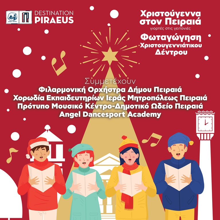 Στη γιορτινή αυτή βραδιά,  τη μαγεία και τη ζεστασιά της φετινής εορταστικής περιόδου θα προσδώσουν οι χριστουγεννιάτικες  μελωδίες της Φιλαρμονικής Ορχήστρας Πνευστών του Δήμου Πειραιά, καθώς και οι  φωνές της χορωδίας του Πρότυπου Μουσικού Κέντρου – Δημοτικού  Ωδείου  Πειραιά και της  χορωδίας της Ιεράς Μητροπόλεως Πειραιά, με τη συμμετοχή της  Angel Dancesport Academy.