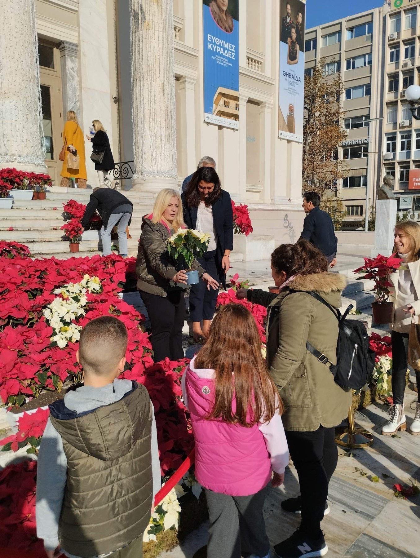 «Με χαρά προσφέραμε σήμερα σε πολίτες τα αλεξανδρινά που στόλιζαν την είσοδο του Δημοτικού Θεάτρου Πειραιά τις ημέρες των γιορτών. Με την Αντιδήμαρχο Εξωστρέφειας Ανδριάνα Ζαρακέλη και την Αντιδήμαρχο Πρασίνου Αντωνία Καρακατσάνη προσφέραμε περισσότερα από 1.000 φυτά, που είχαν χρησιμοποιηθεί για τη σύνθεση στα σκαλιά του θεάτρου σε περαστικούς κι εκείνοι το χάρηκαν ιδιαίτερα. Εύχομαι να τους αρέσουν και να στολίσουν με αυτά τα σπίτια τους».