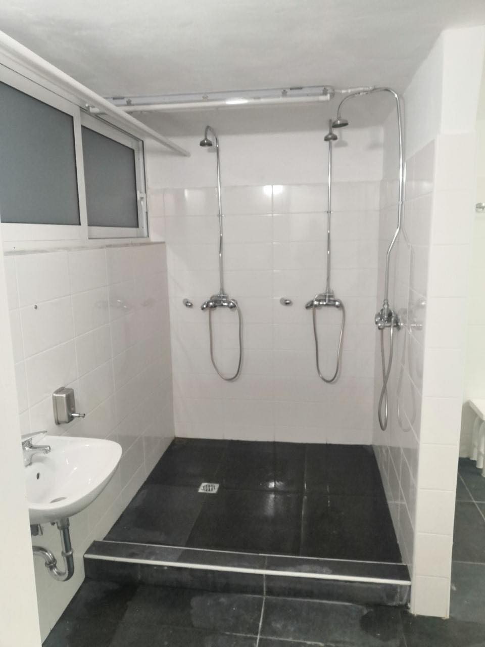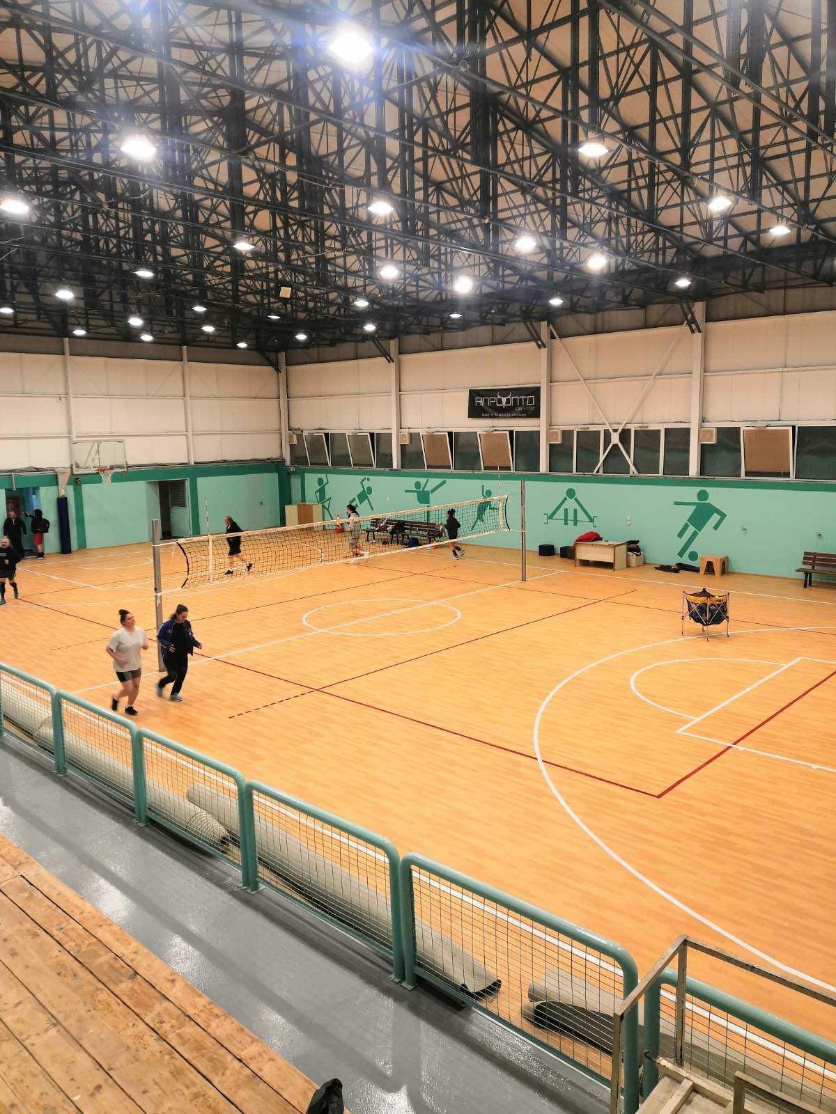 Επίσης έγινε αντικατάσταση των ειδών υγιεινής με υδραυλικές εργασίες ύδρευσης – αποχέτευσης, τοποθέτηση ερμαρίων στους χώρους των αποδυτηρίων και δημιουργία ειδικά διαμορφωμένου χώρου WC για ΑμεΑ, ενώ παράλληλα αντικαταστάθηκαν τα κουφώματα του αγωνιστικού χώρου με κουφώματα αλουμινίου, έγινε αλλαγή δαπέδου με δάπεδο pvc, κατάλληλο για χρήση σε επαγγελματικούς χώρους (μπάσκετ, βόλλευ κ.α.).
