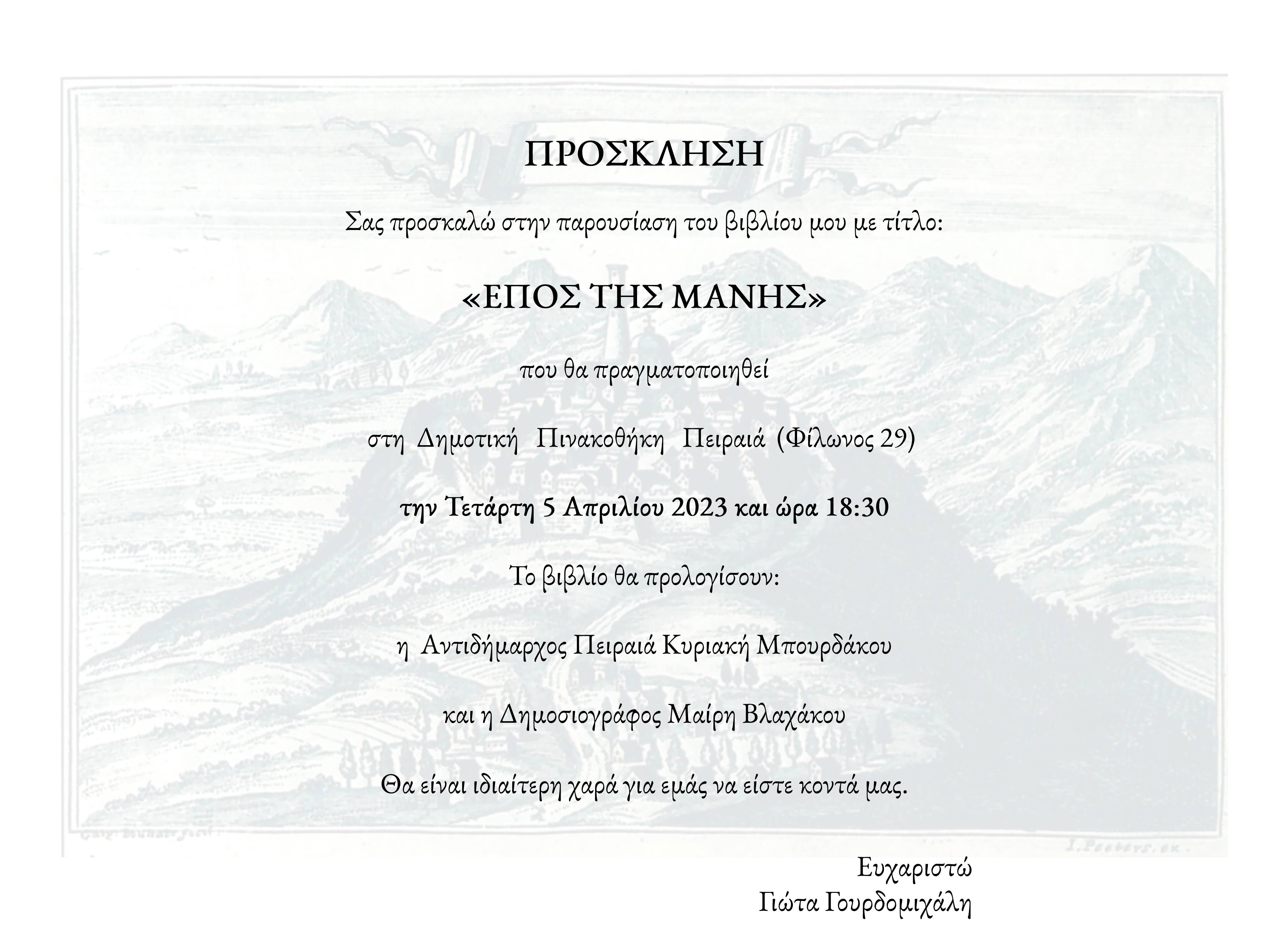 Εκδηλώσεις Εφημερίδα Πολιτισμός Παρουσιάση βιβλίου “Έπος της Μάνης” στη Δημοτική Πιναλοθήκη Πειραιά 3 Απριλίου, 2023 DIMITRIS 0 Σχόλια ΒΙΒΛΙΟ, ΕΚΔΗΛΩΣΕΙΣ, ΜΑΝΗ, ΠΟΛΙΤΙΣΜΟΣ Author: DIMITRIS
