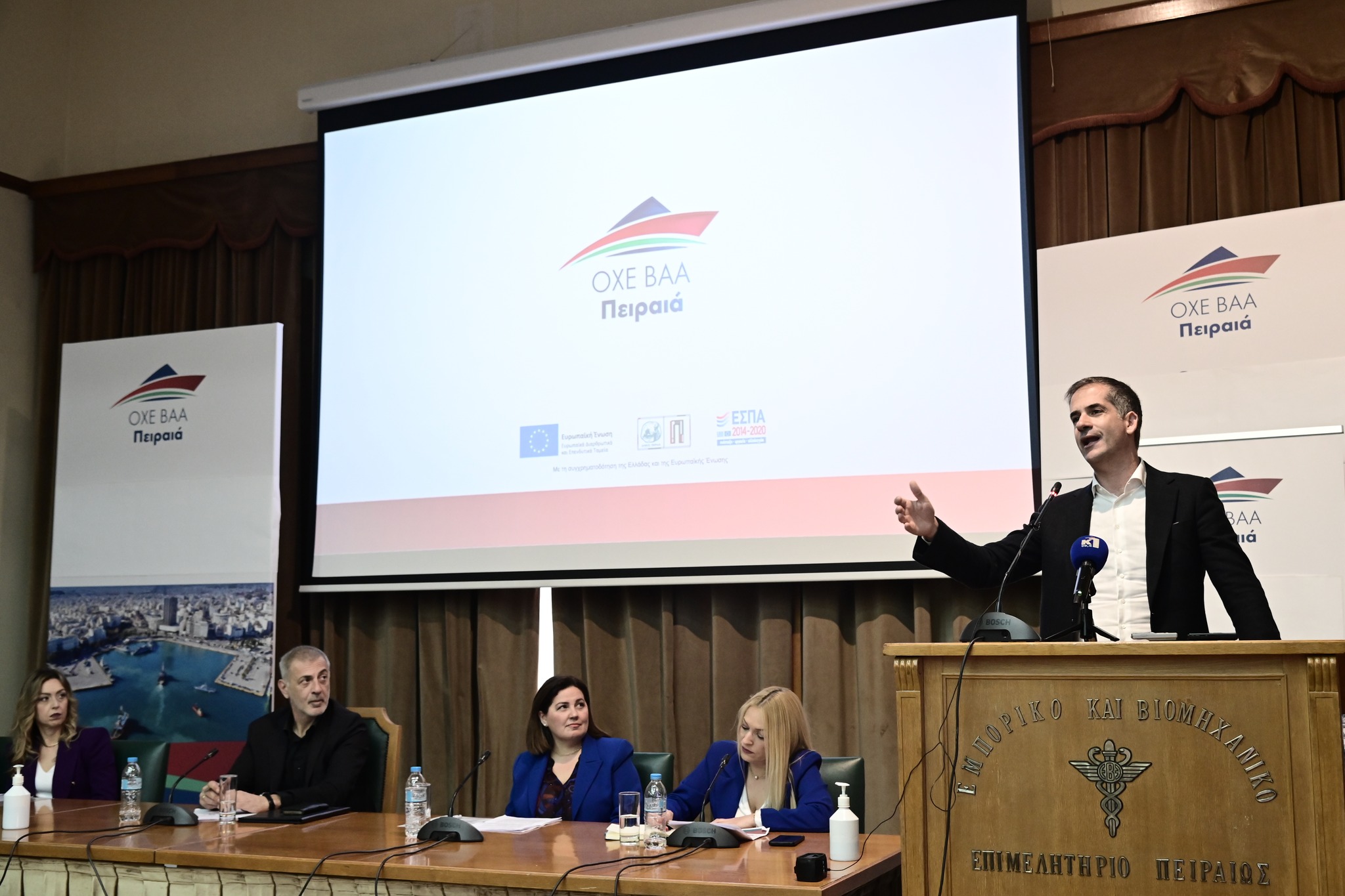 Ο Πρόεδρος του Βιοτεχνικού Επιμελητηρίου Πειραιά κ. Γιώργος Παπαμανώλης-Ντόζας, τόνισε: «Η Στρατηγική του Δήμου Πειραιά στόχο είχε μέσω της ΟΧΕ την ανασύνταξη της τοπικής οικονομίας και της επιχειρηματικότητας του Πειραιά. Είναι ιδιαίτερα ενθαρρυντικό πως από τα 80.000.000 ευρώ της ΟΧΕ τα οποία ενέκρινε η Περιφέρεια Αττικής σε μια διαγωνιστική διαδικασία, τα 25.000.000 αφορούσαν την επιχειρηματικότητα, και φυσικά σε συνεργασία και πάλι Δήμου και επιμελητηρίων επιδοτήθηκαν  επιχειρήσεις, με ένα πρόγραμμα 7 εκατ. ευρώ άμεσης χρηματοδότηση  που επλήγησαν λόγω Covid-19. Υλοποιήθηκαν και υλοποιούνται σημαντικές δράσεις σε θέματα  που απασχολούν την επιχειρηματικότητα στην πόλη του Πειραιά μας, όπως η γαλάζια οικονομία, η καινοτομία, ο ψηφιακός μετασχηματισμός και άλλα σημαντικά θέματα  πάντα σε συνεργασία με τα επιμελητήρια και τους παραγωγικούς φορείς».