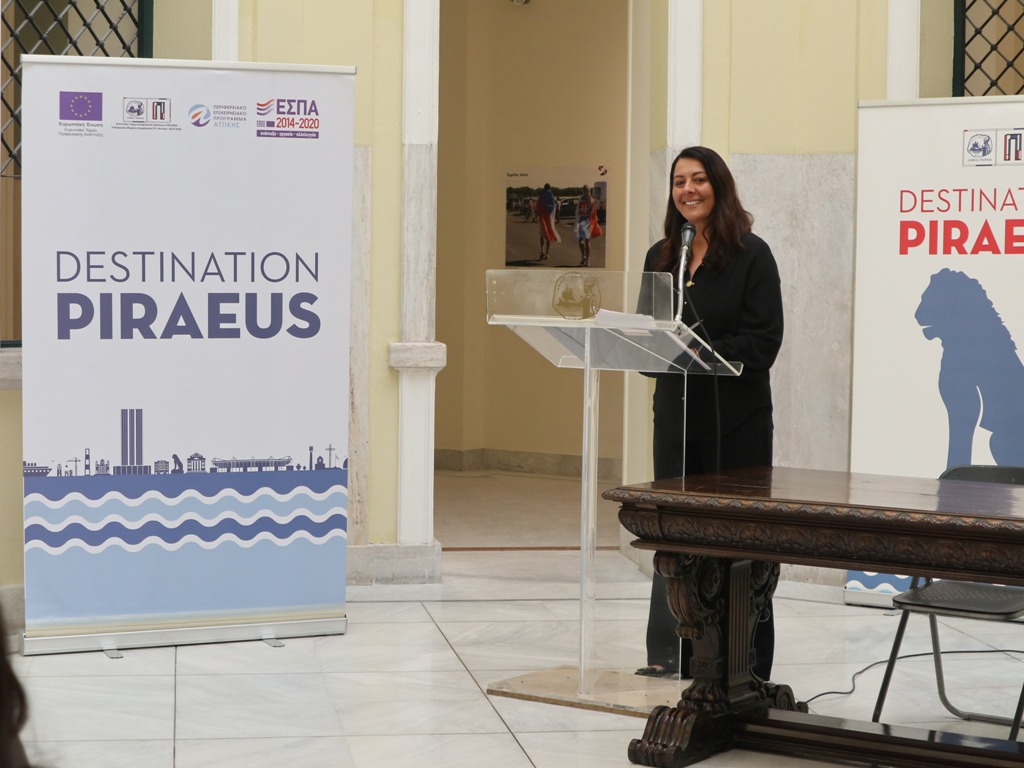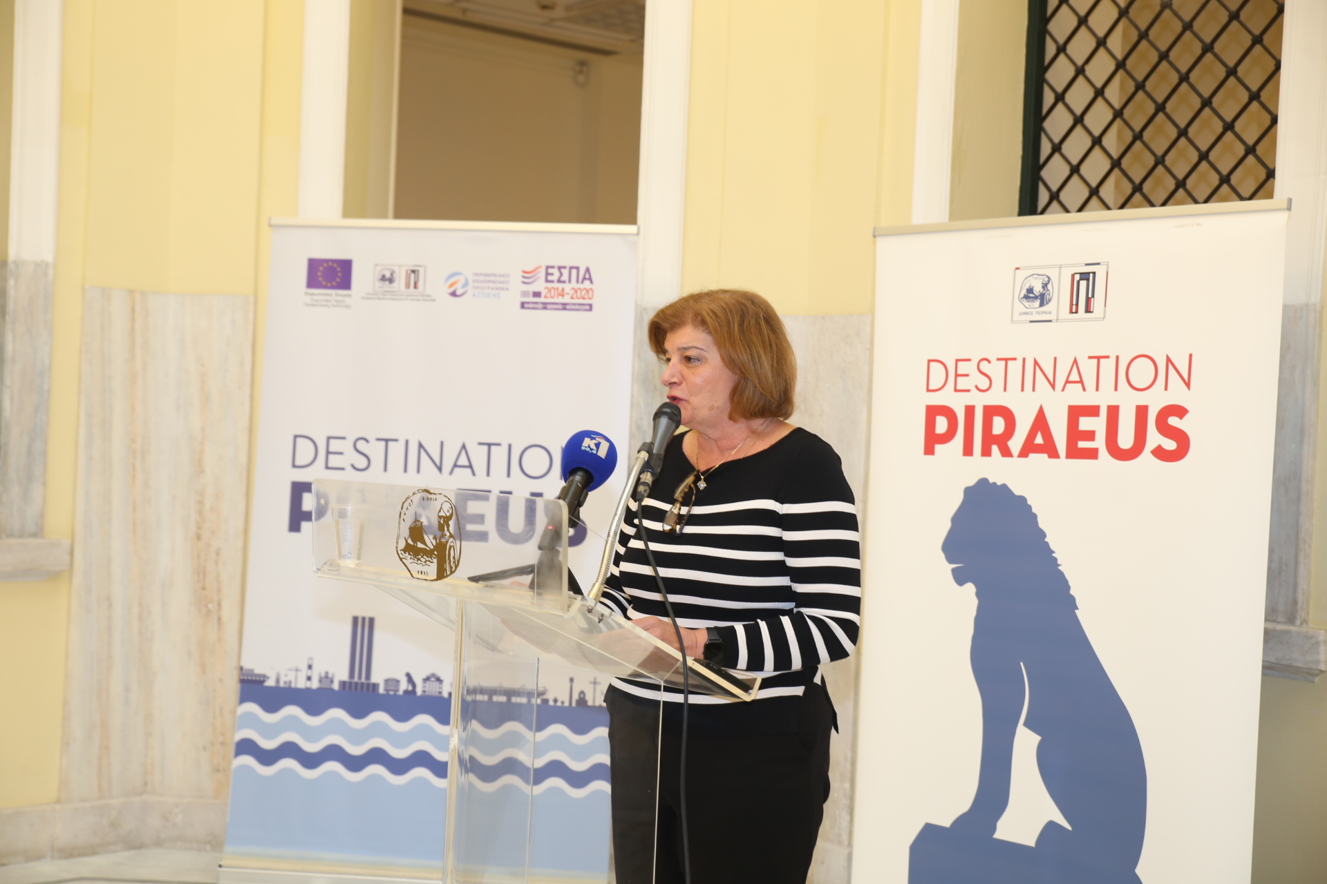 Η Διευθύντρια Πολιτισμού του Δήμου Πειραιά και ιστορικός κα Ευαγγελία Μπαφούνη, στον χαιρετισμό της, αναφέρθηκε στην μακραίωνη ιστορία του Πειραιά, στα τοπόσημά του και ανέδειξε τα ιστορικά γεγονότα που «σημάδεψαν» την πόλη.