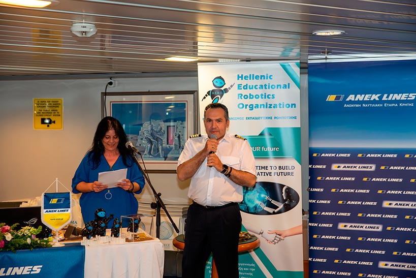 Η Εκπρόσωπος του Ελληνικού Οργανισμού Εκπαιδευτικής Ρομποτικής H.E.R.O κα Καμνάκη Χαρά,  ανέφερε: “ Ευχαριστούμε θερμά για την υπέροχη φιλοξενία την ANEK LINES η οποία είναι πάντα παρούσα σε όλες μας τις δράσεις. Η ANEK LINES αποτελεί σύμβολο για την Κρήτη μας, αφού μέσα από το τεράστιο κοινωνικό και χορηγικό της έργο ενώνει σχολεία, οργανισμούς, αθλητικούς συλλόγους, πολιτιστικούς φορείς και ευπαθείς ομάδες με την υπόλοιπη Ελλάδα.”
