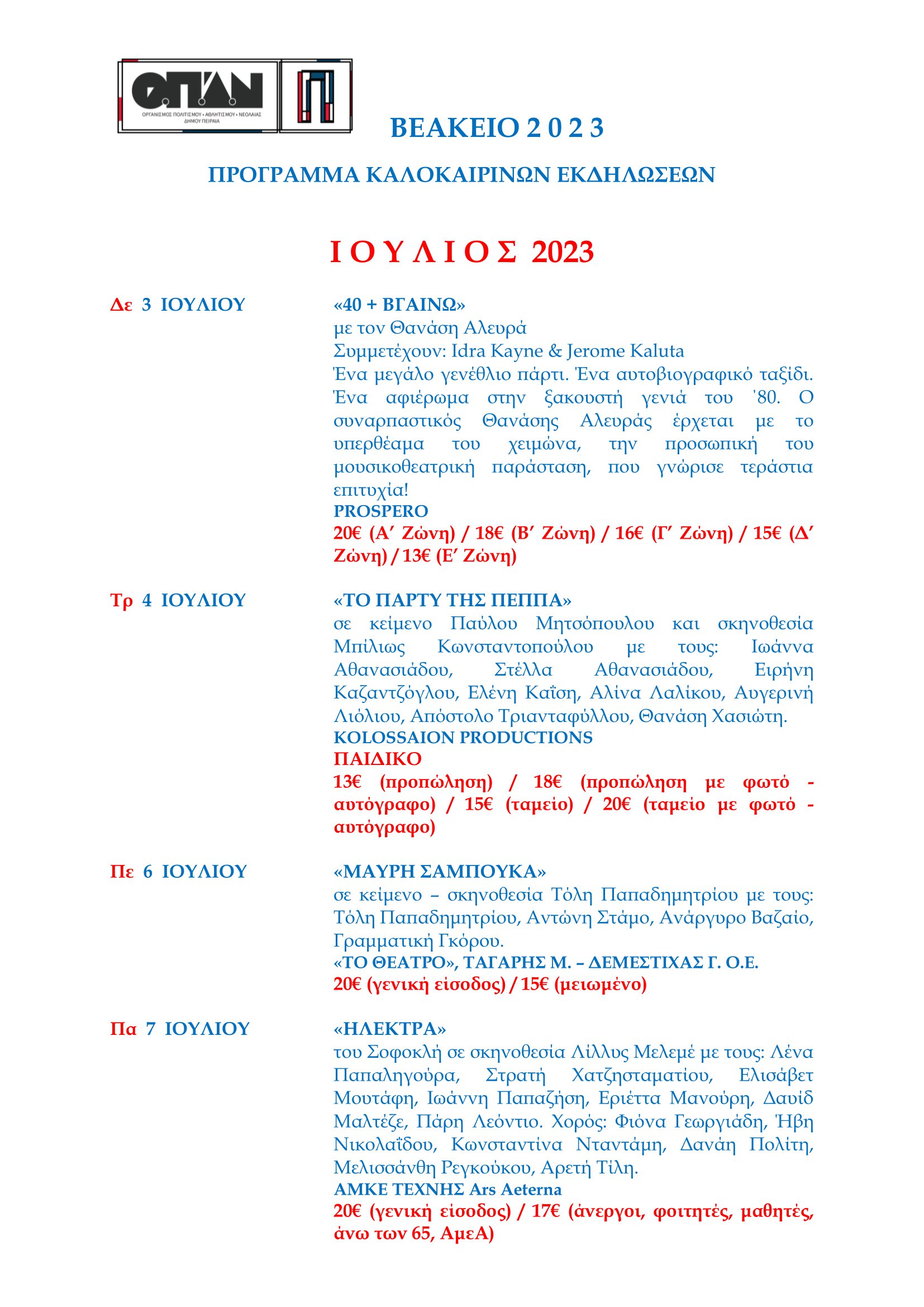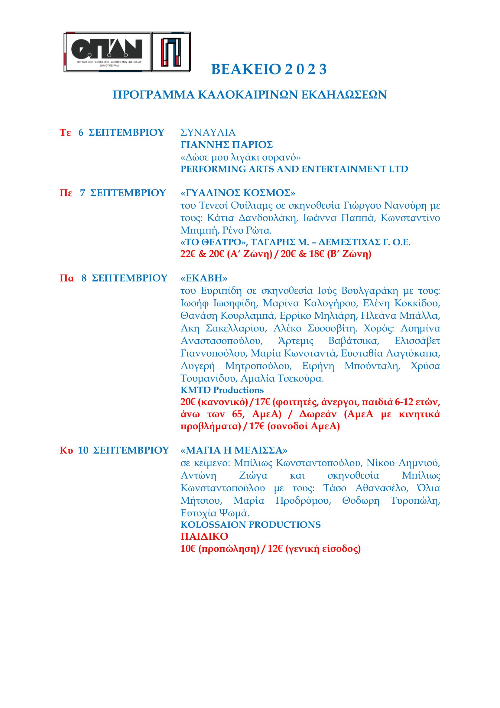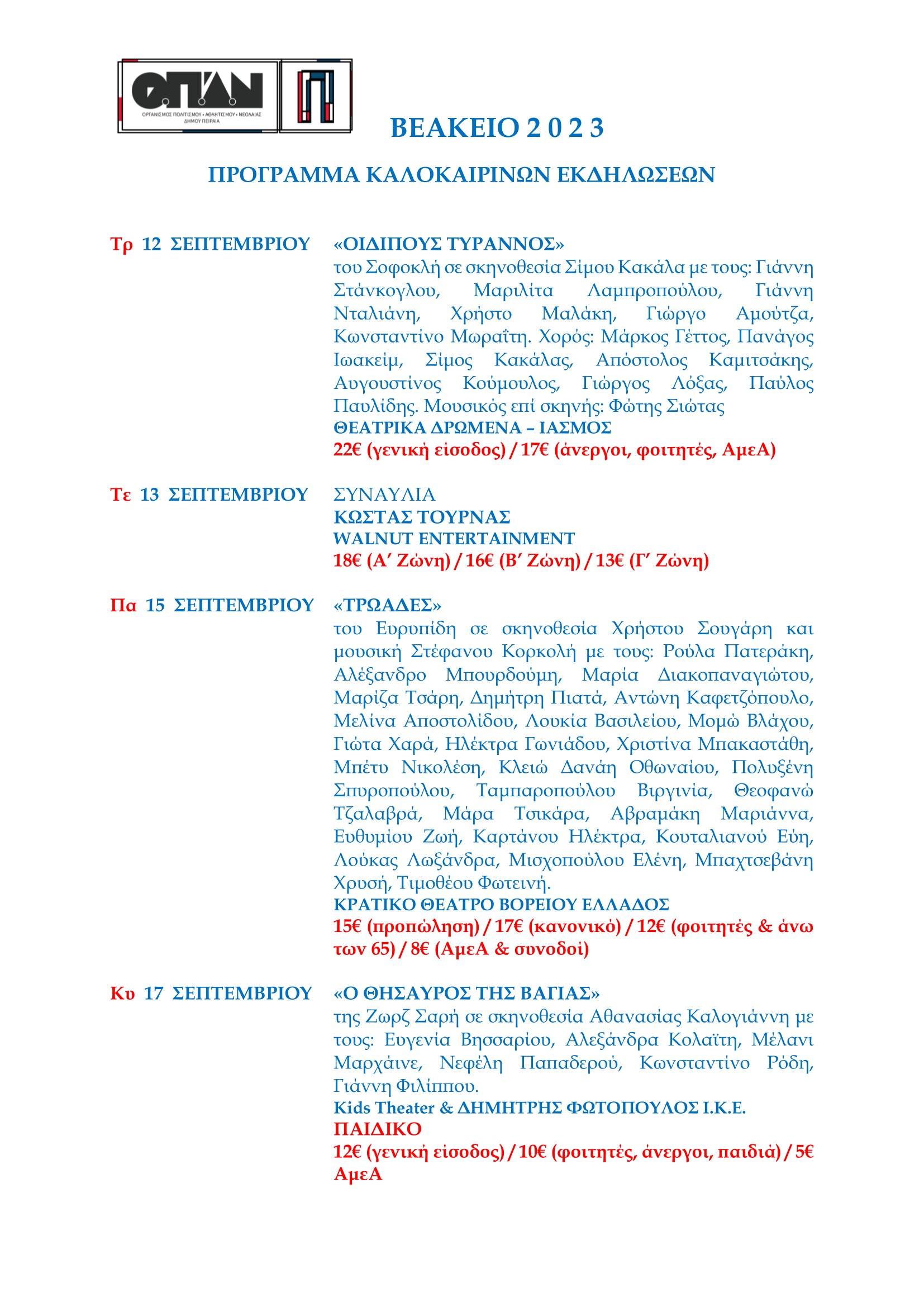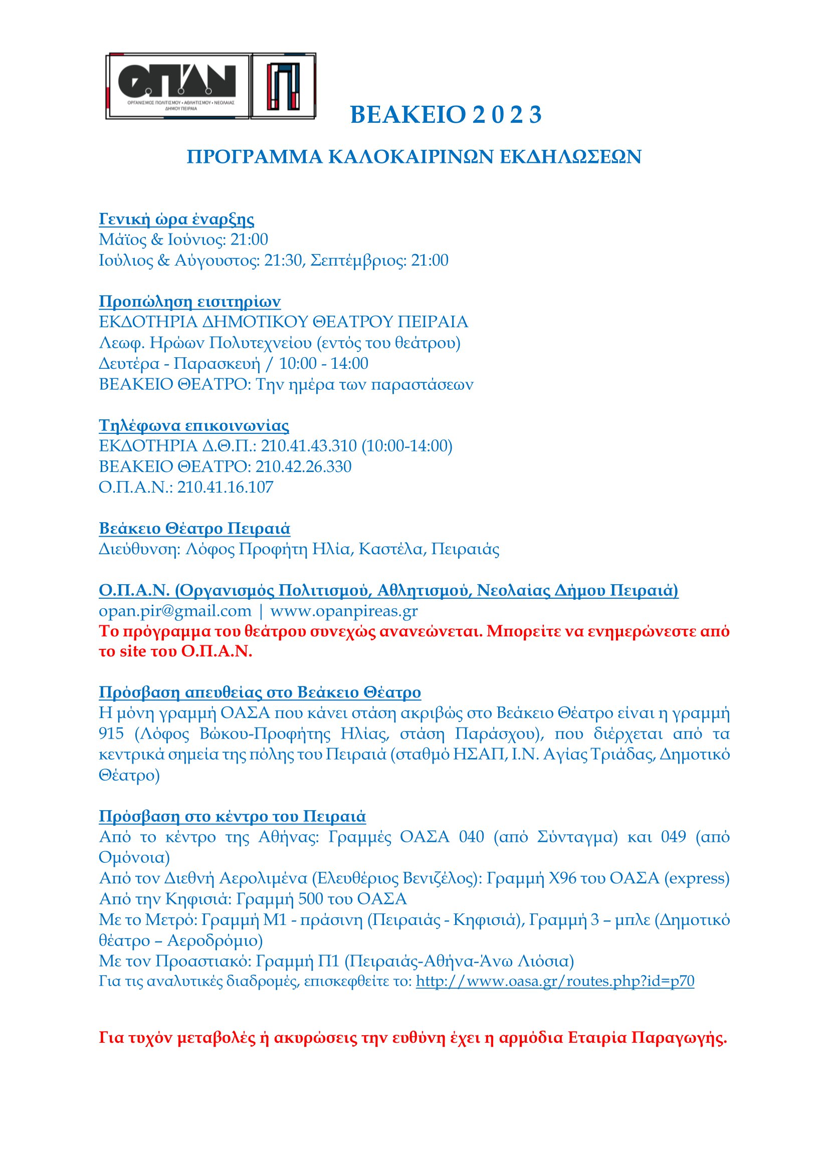 Βεάκειο Θέατρο 2023 : Δείτε το πλήρες φετινό πρόγραμμα