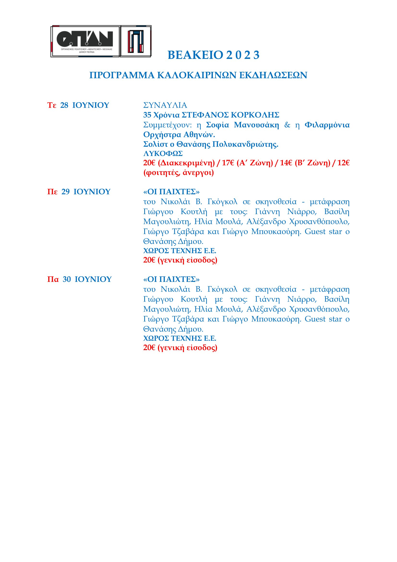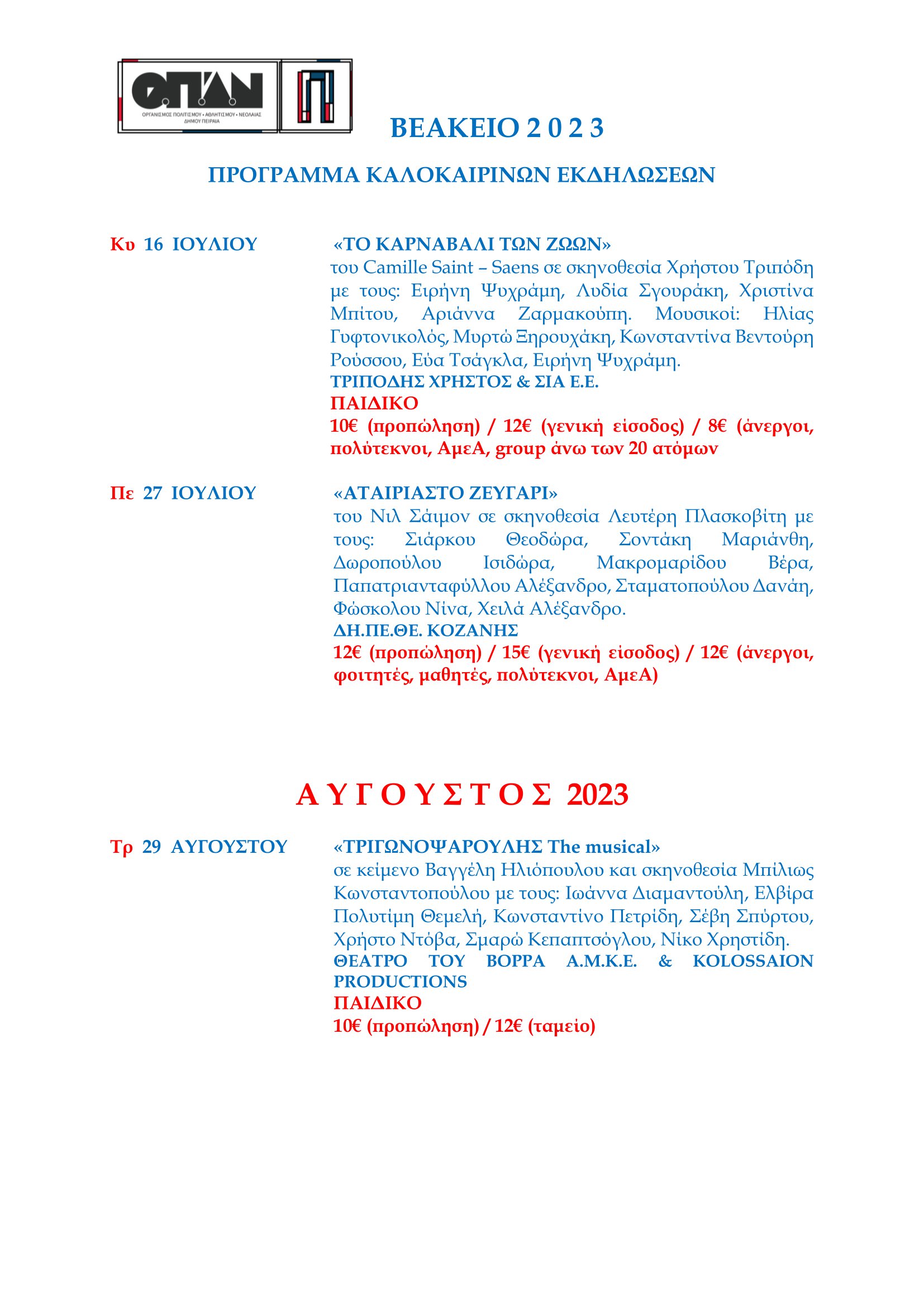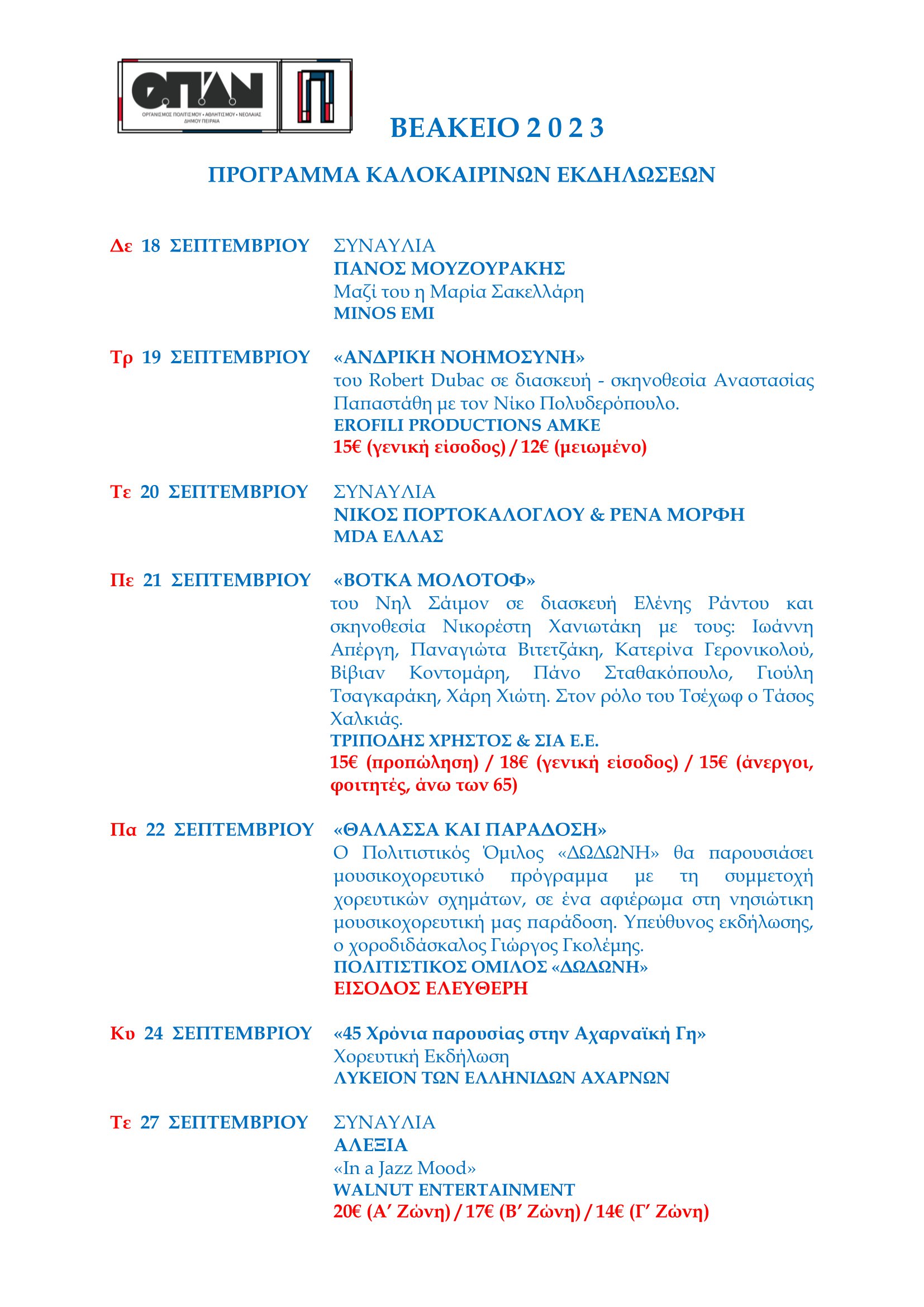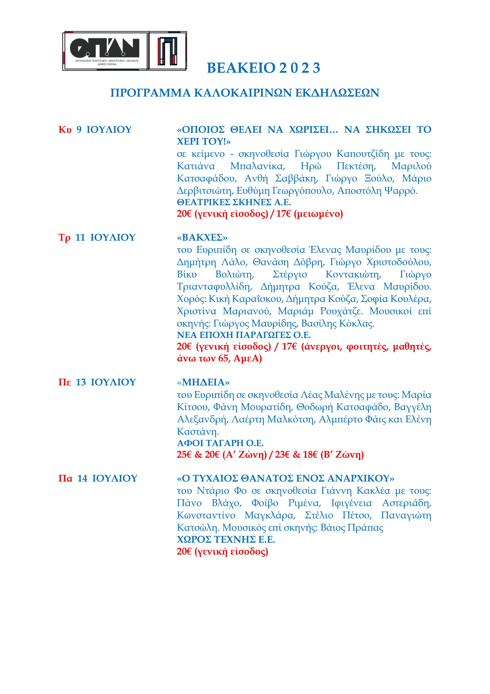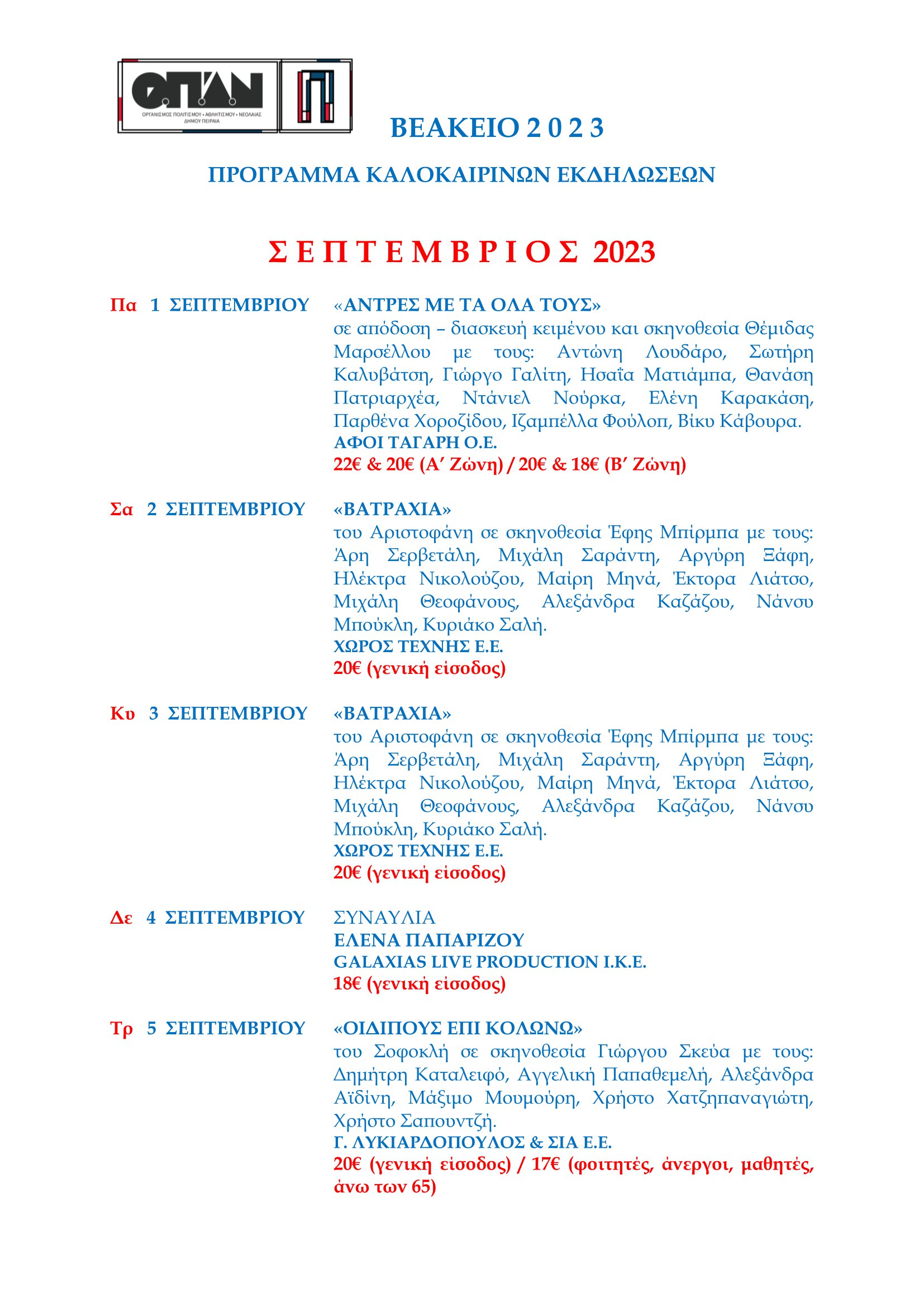 Βεάκειο Θέατρο 2023 : Δείτε το πλήρες φετινό πρόγραμμα