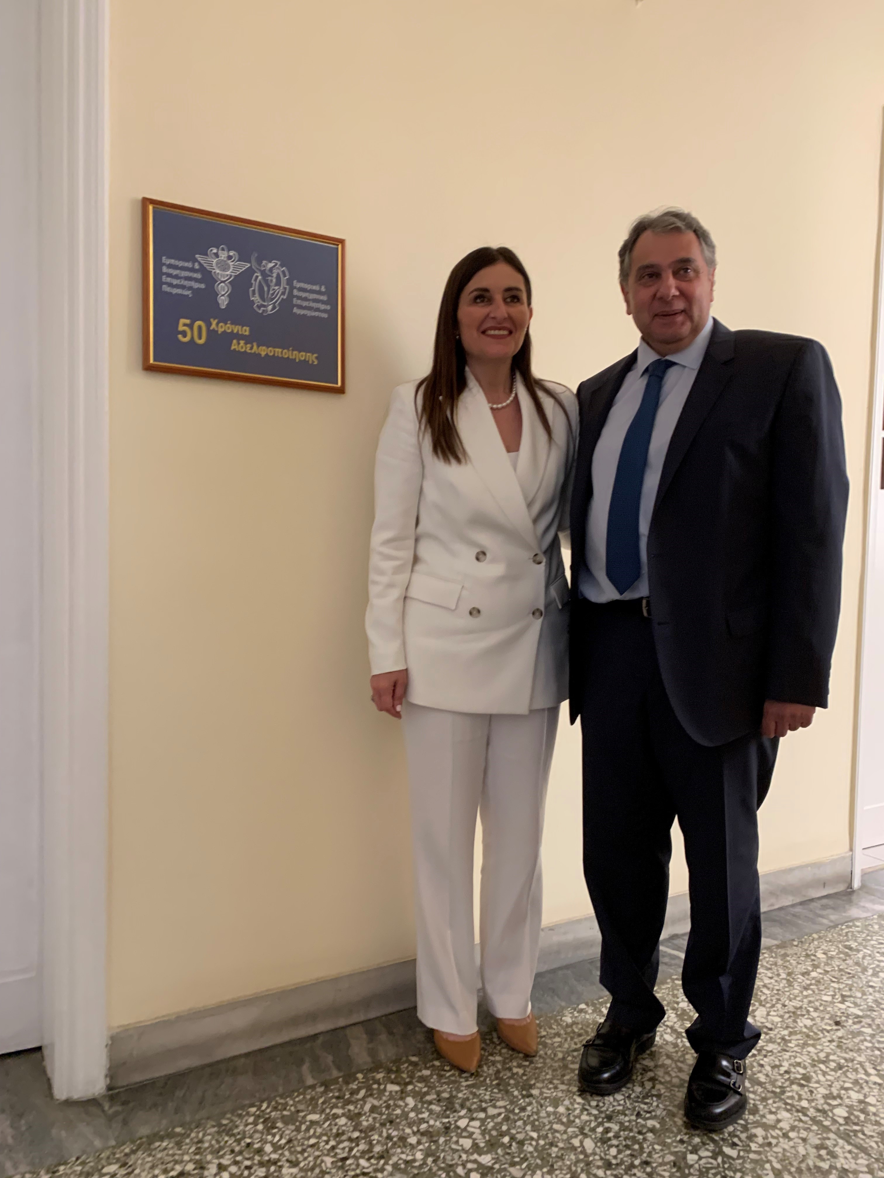 Υποδεχόμενος την Υφυπουργό, ο πρόεδρος του Ε.Β.Ε.Π., Βασίλης Κορκίδης, την συνεχάρη για την ανάληψη των καθηκόντων της και εξέφρασε την επιθυμία να τονίσει την αναγκαιότητα ενίσχυσης των υφιστάμενων και μελλοντικών συνεργασιών. Ο πρόεδρος του Επιμελητηρίου αναφέρθηκε στις στενές σχέσεις Κύπρου και Ελλάδας, την σύμπλευσή τους σε μεγάλα ζητήματα που απασχολούν τη ναυτιλία και το επιχειρείν υπενθυμίζοντας, παράλληλα, την στενή συνεργασία του Επιμελητηρίου με το Ε.Β.Ε. Αμμοχώστου με την υπογραφή του επικαιροποιημένου Πρωτοκόλλου Αδελφοποίησης μεταξύ των δύο Επιμελητηρίων, η οποία και διανοίγει νέους ορίζοντες στην ήδη 50χρονη συνεργασία τους.