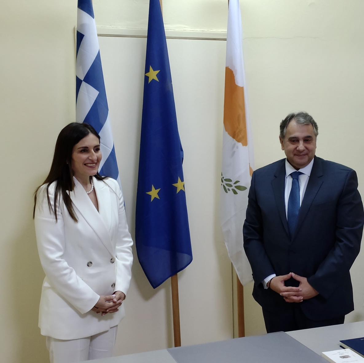Από την πλευρά της, η υφυπουργός Ναυτιλίας της Κύπρου, Μαρίνα Χατζημανώλη, αναφέρθηκε στην πολιτική που ακολουθεί το Κυπριακό νηολόγιο το οποίο θα είναι πλήρως ψηφιοποιημένο μέχρι το 2024, αλλά και στις συνέργειες που μπορεί να αναπτυχθούν στα ναυτιλιακά fora από την Ελλάδα και την Κύπρο. Ιδιαίτερο ενδιαφέρον έδειξε η κα Χατζημανώλη και για την ψηφιακή πλατφόρμα port community system, υπό το ΥΝΝΠ, που προωθούν από κοινού Ε.Β.Ε.Π., Ν.Ε.Ε. και Ε.Ε.Ε., αλλά και για τα πεδία στα οποία θα μπορούσε να υπάρξει συνεργασία με τις αρμόδιες Κυπριακές αρχές.