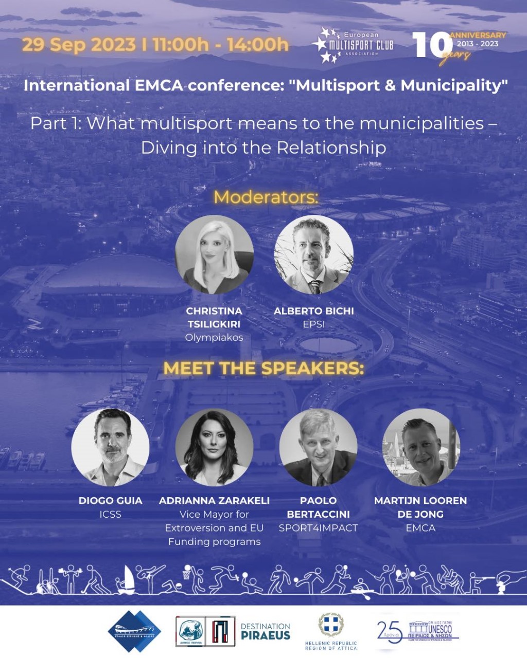 Στο πλαίσιο του συνεδρίου θα πραγματοποιηθεί και η γενική συνέλευση της EMCA για τα 10 χρόνια από την ίδρυση της. Η εκδήλωση τελεί υπό την αιγίδα του Δήμου Πειραιά, της Περιφέρειας Αττικής και του ομίλου UNESCO Πειραιώς και Νήσων. Χορηγοί επικοινωνίας της εκδήλωσης είναι το My Radio 104,6, Κανάλι 1 90,4 και το zostonpirea.gr.