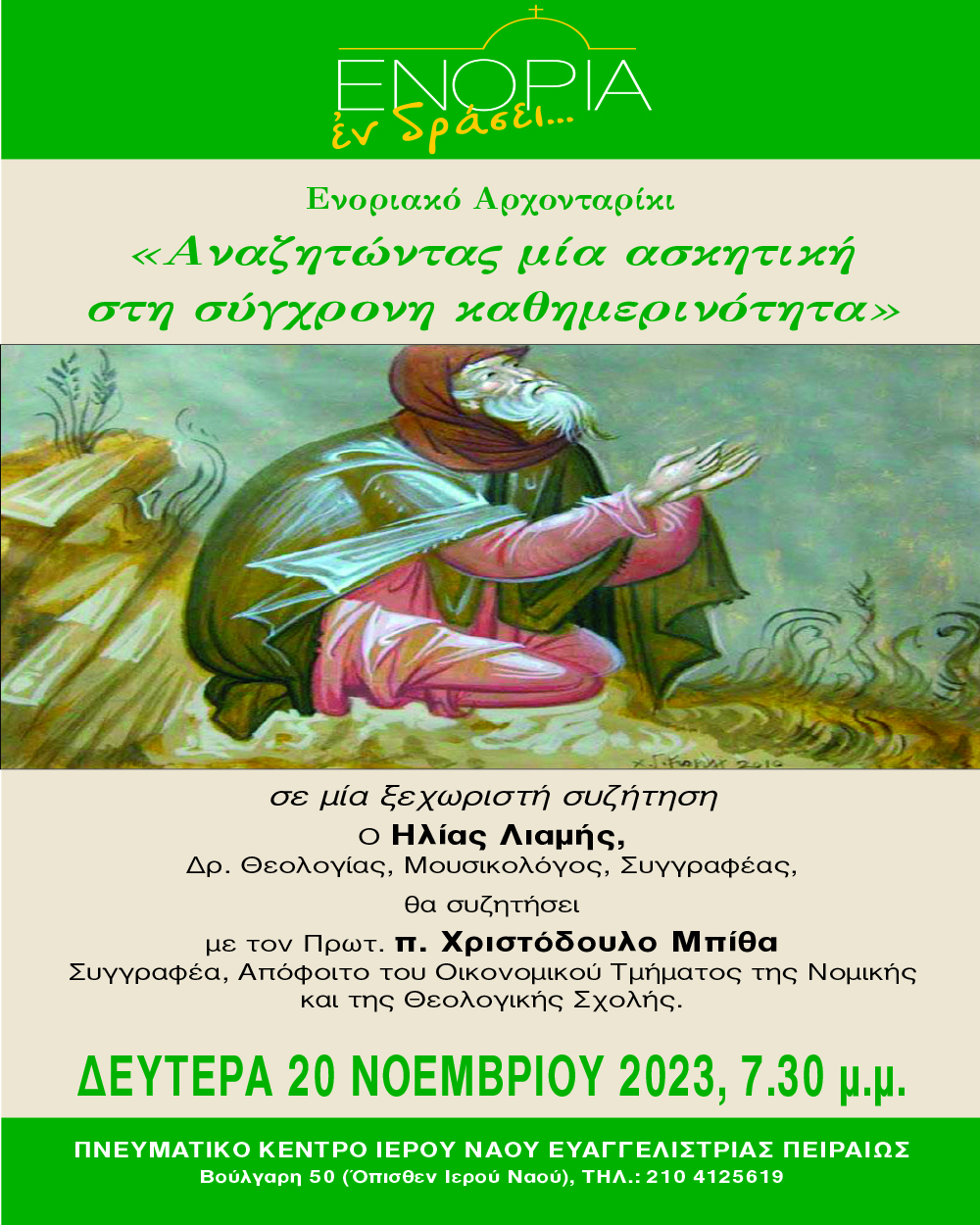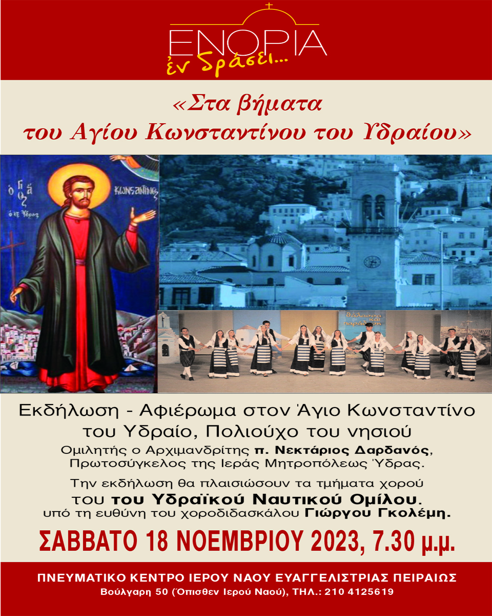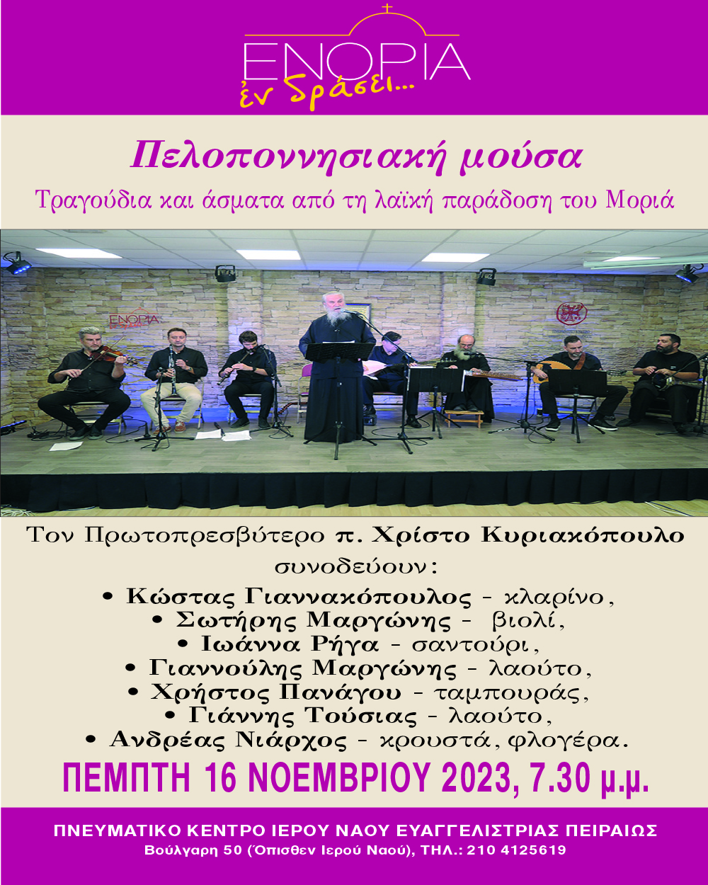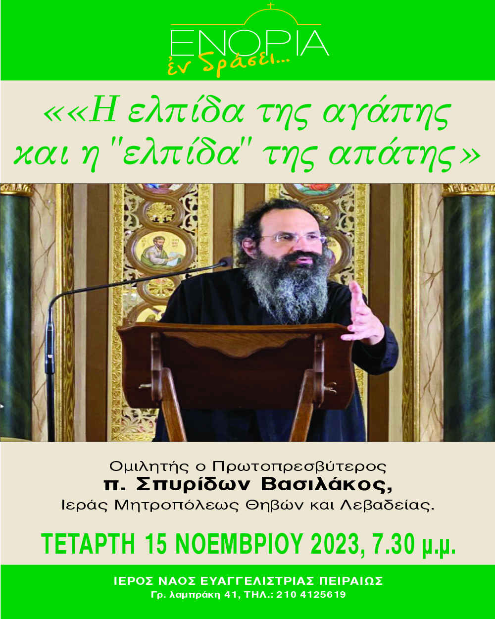 Εκδηλώσεις Εφημερίδα Πειραϊκή Εκκλησία Πολιτισμός 7η Εβδομάδα του προγράμματος «Ενορία εν δράσει» 13 Νοεμβρίου, 2023 DIMITRIS 0 Σχόλια ΕΚΔΗΛΩΣΕΙΣ, ΕΝΟΡΙΑ ΕΝ ΔΡΑΣΕΙ, ΕΥΑΓΓΕΛΙΣΤΡΙΑ, ΠΕΙΡΑΪΚΗ ΕΚΚΛΗΣΙΑ, ΠΟΛΙΤΙΣΜΟΣ Author: DIMITRIS