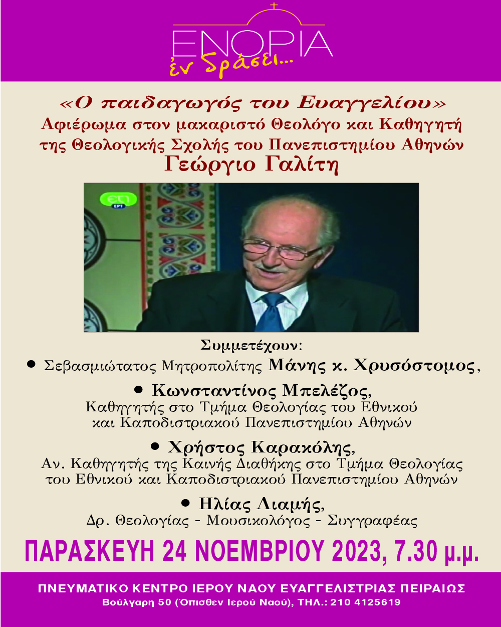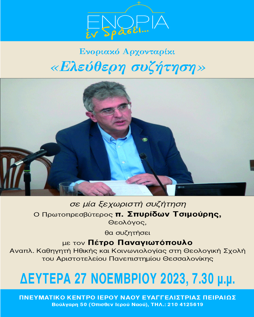 Εκδηλώσεις Εφημερίδα Πειραϊκή Εκκλησία Πολιτισμός “Ενορία Εν Δράσει” – Πρόγραμμα εκδηλώσεων 20 Νοεμβρίου, 2023 DIMITRIS 0 Σχόλια ΕΚΔΗΛΩΣΕΙΣ, ΕΝΟΡΙΑ ΕΝ ΔΡΑΣΕΙ, ΕΥΑΓΓΕΛΙΣΤΡΙΑ, ΠΟΛΙΤΙΣΜΟΣ Author: DIMITRIS
