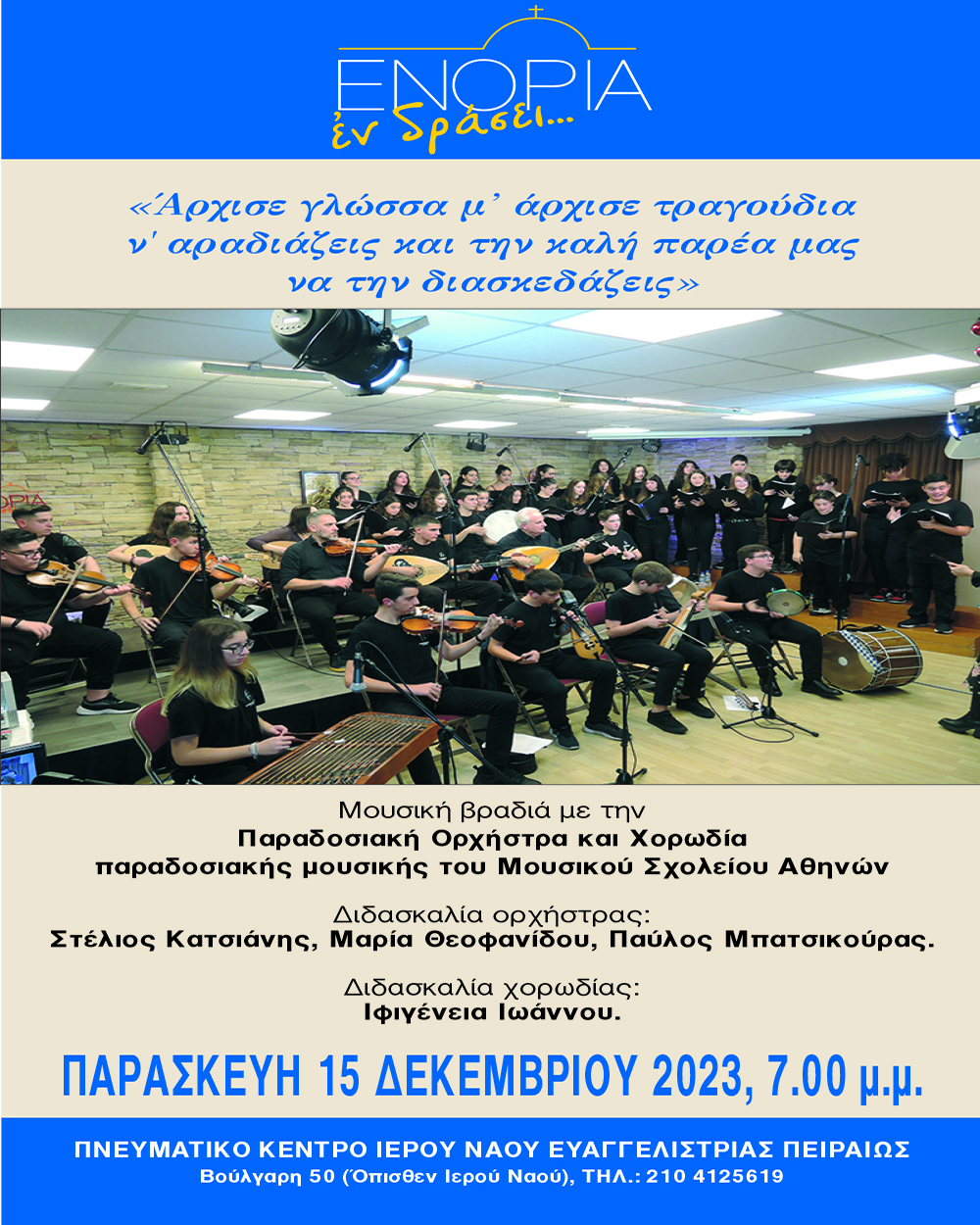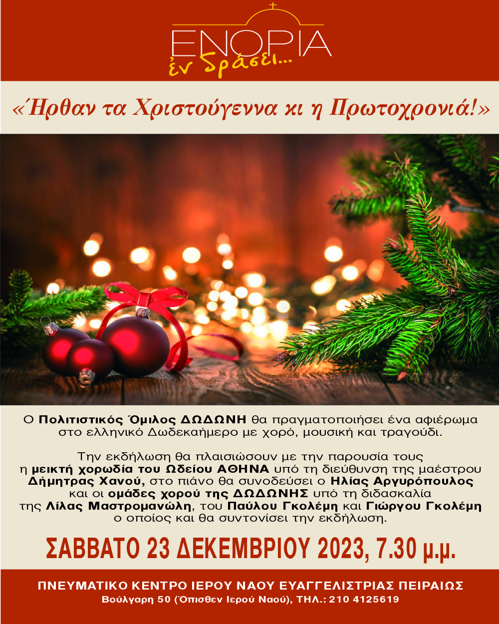 Εκδηλώσεις Εφημερίδα Πειραϊκή Εκκλησία Πολιτισμός Εκδηλώσεις από την “Ενορία Εν Δράσει” για τις 14 έως 23/12/2023 13 Δεκεμβρίου, 2023 DIMITRIS 0 Σχόλια ΕΚΔΗΛΩΣΕΙΣ, ΕΝΟΡΙΑ ΕΝ ΔΡΑΣΕΙ, ΕΥΑΓΓΕΛΙΣΤΡΙΑ, ΠΟΛΙΤΙΣΜΟΣ Author: DIMITRIS