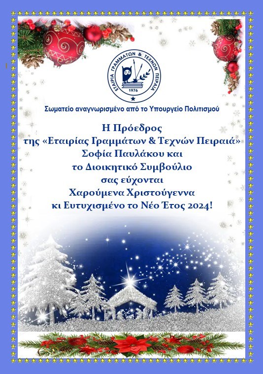 Uncategorized Ευχές της Εταιρίας Γραμμάτων & Τεχνών Πειραιά 18 Δεκεμβρίου, 2023 DIMITRIS 0 Σχόλια ΕΥΧΕΣ Author: DIMITRIS