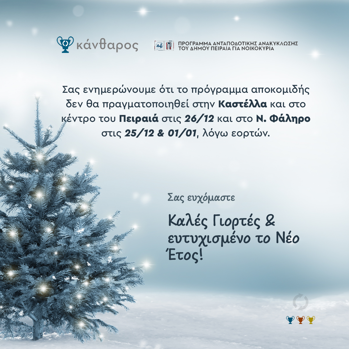 Uncategorized Ευχές από το Πρόγραμμα Ανταποδοτικής Ανακύκλωσης Δ. Πειραιά 18 Δεκεμβρίου, 2023 DIMITRIS 0 Σχόλια ΕΥΧΕΣ Author: DIMITRIS