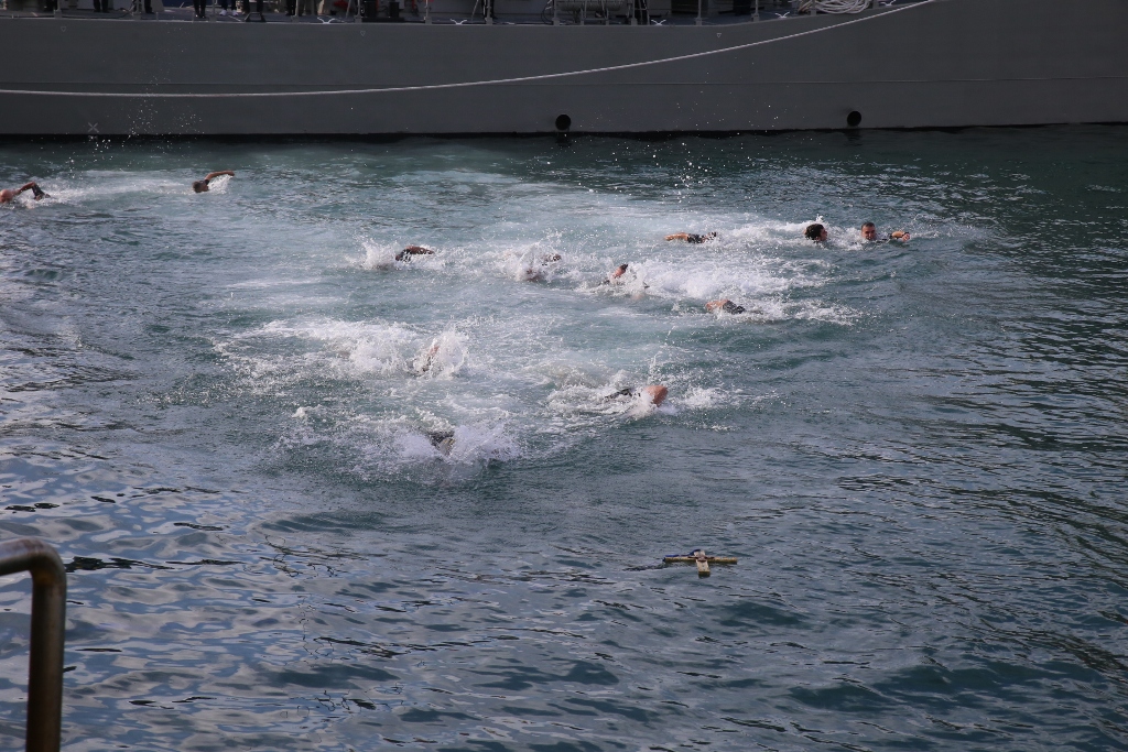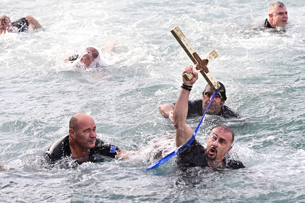 Τον σταυρό ανέσυραν από τα νερά του λιμανιού του Πειραιά μέλη του Συνδέσμου Ελλήνων Βατραχανθρώπων.