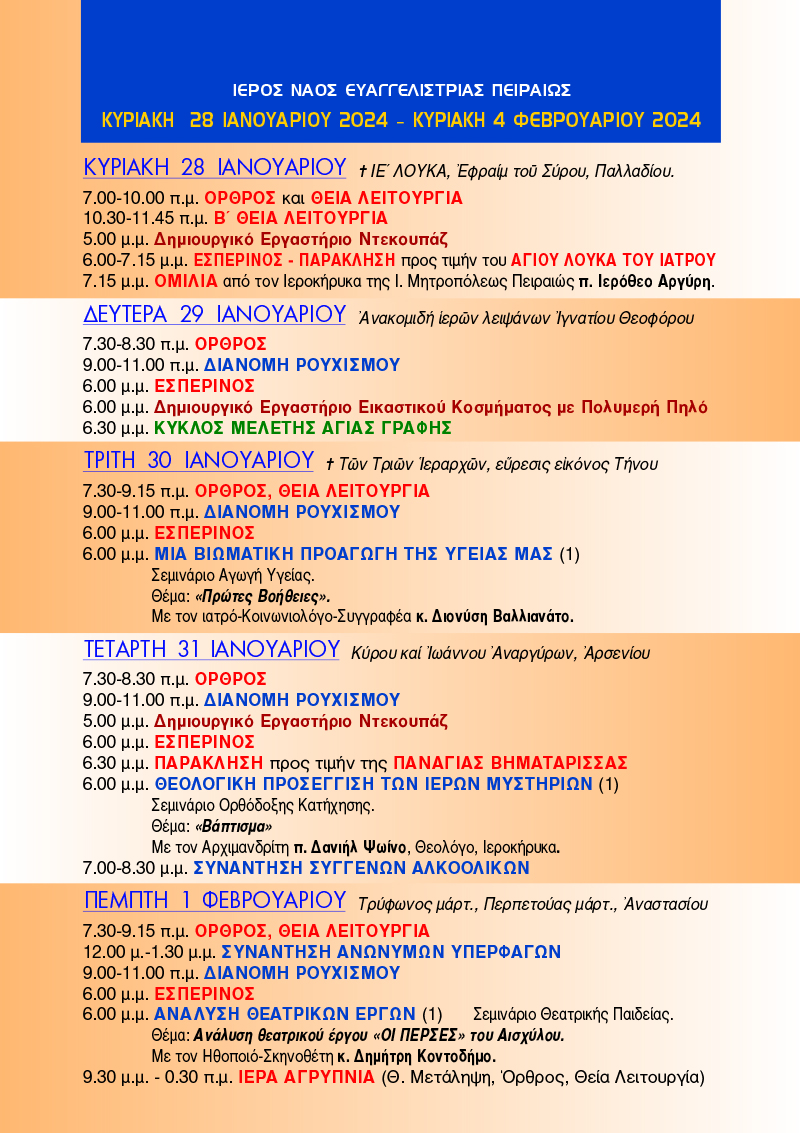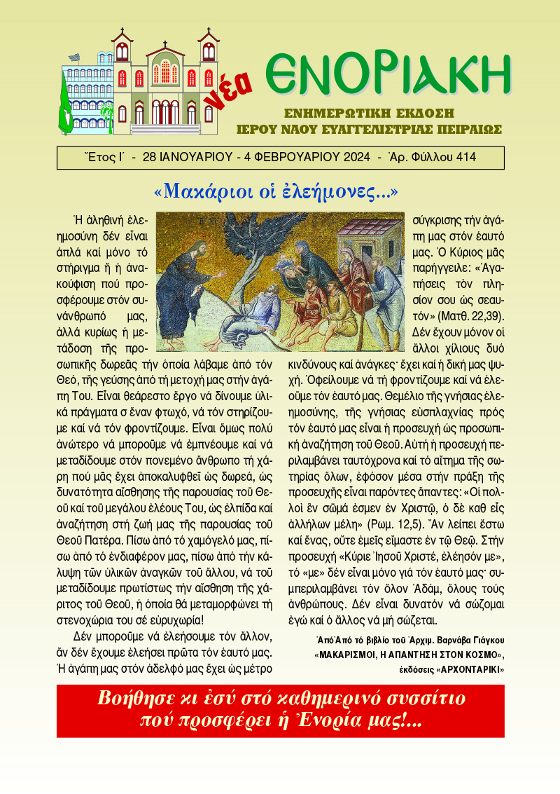 «Νέα Ενοριακή» 28 Ιανουαρίου – 4 Φεβρουαρίου 2024