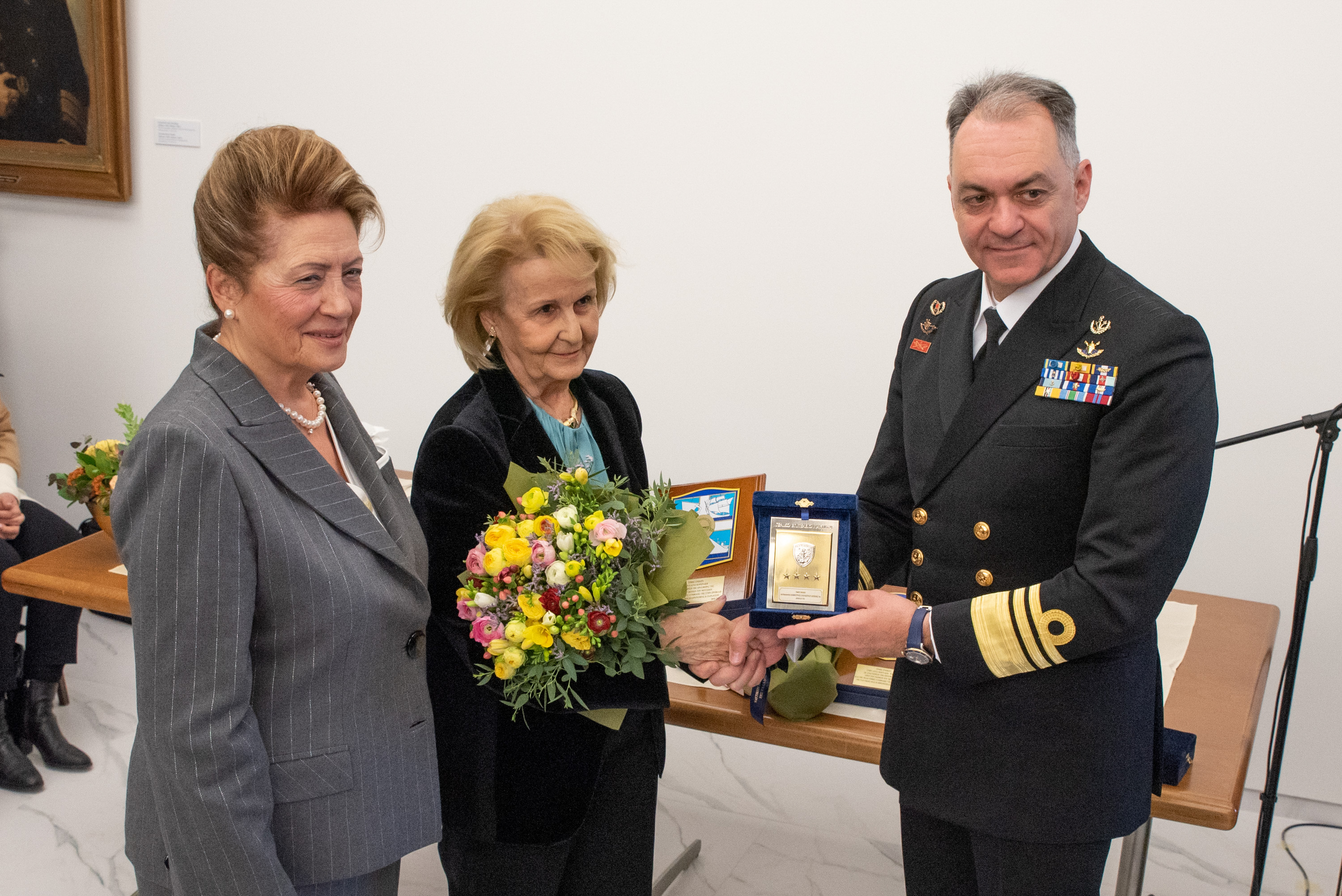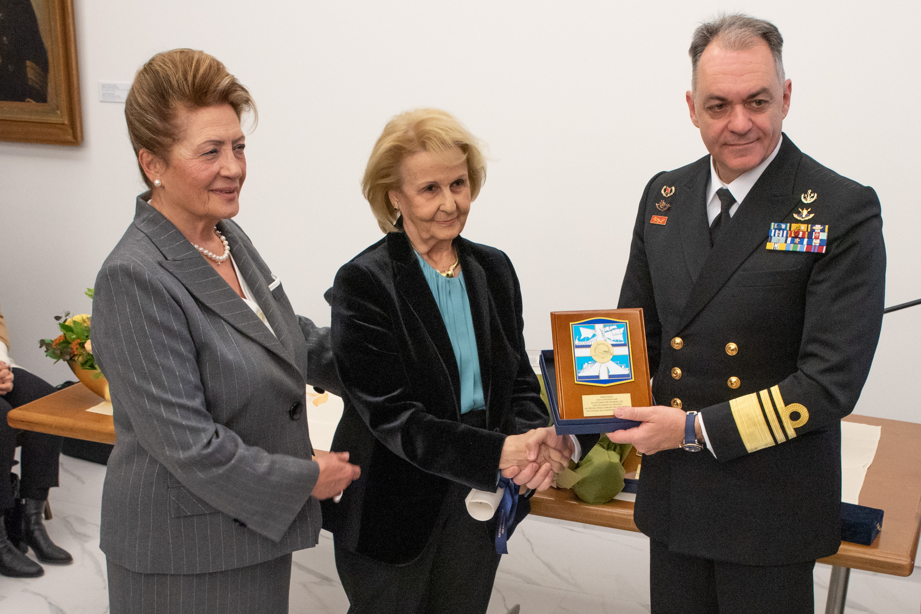 Ακολούθησε η απονομή τιμητικών βραβεύσεων στην κα Άννα Μπενάκη – Ψαρούδα, π. Πρόεδρο της Βουλής και Ακαδημαϊκό και την κα Ελένη Κορωνάκη, Διευθύνουσα Σύμβουλο της εταιρίας Δ. Κορωνάκης ΑΒΕΕ. σε αναγνώριση της προσφοράς τους υπέρ των σκοπών του Μουσείου και της πολύτιμης συμβολής τους στην προβολή της ναυτικής μας κληρονομιάς & παράδοσης.
