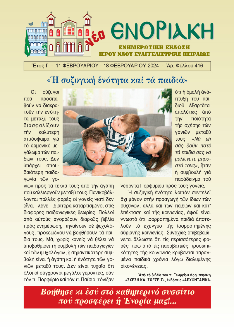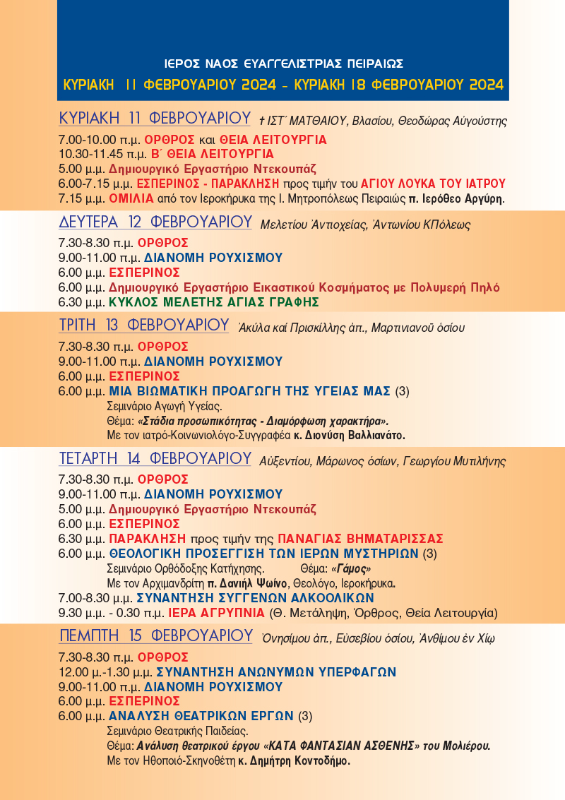 «Νέα Ενοριακή» 11 Φεβρουαρίου – 18 Φεβρουαρίου 2024